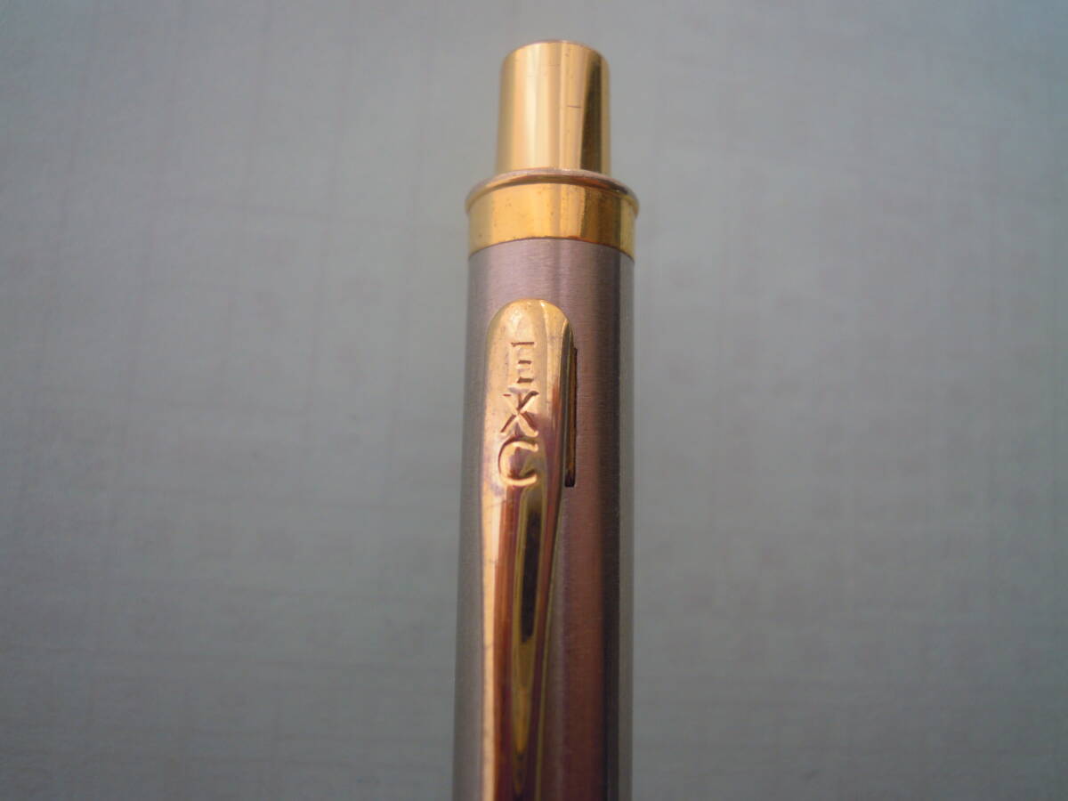 | クリップにEXCと刻印されています。軸天部に三菱のロゴマークがあります。 |