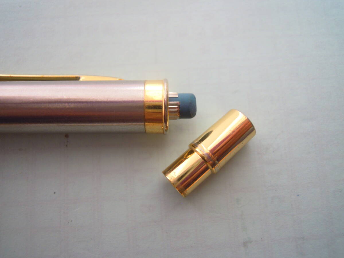| ノック式、芯の繰り出し、反応は良好です。本体に傷やへこみは見当たりません。 |