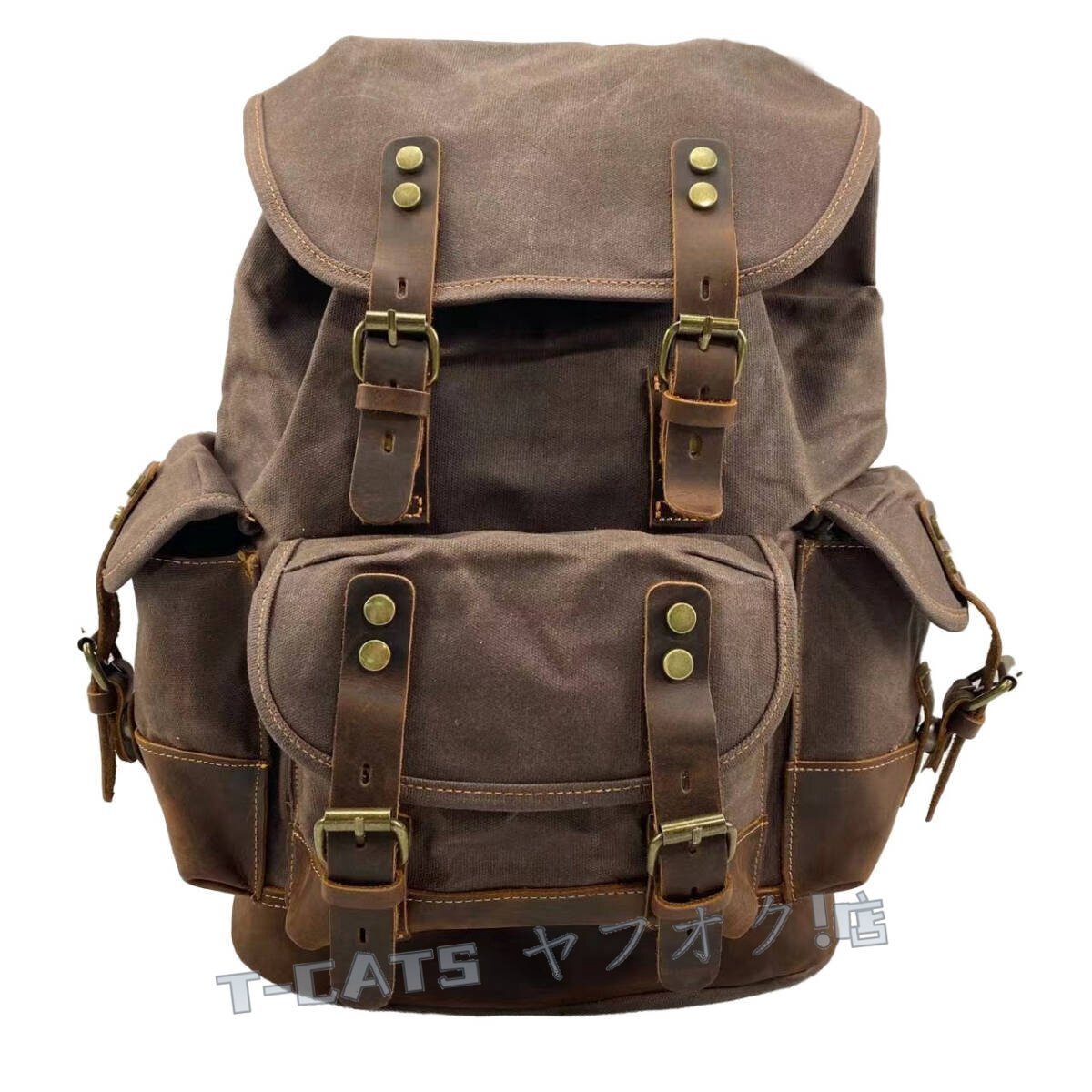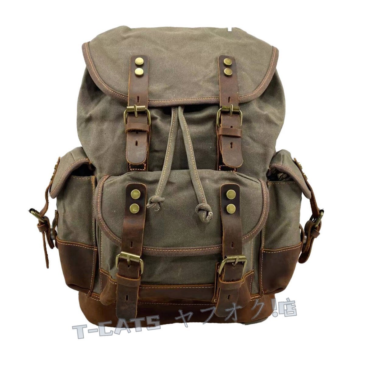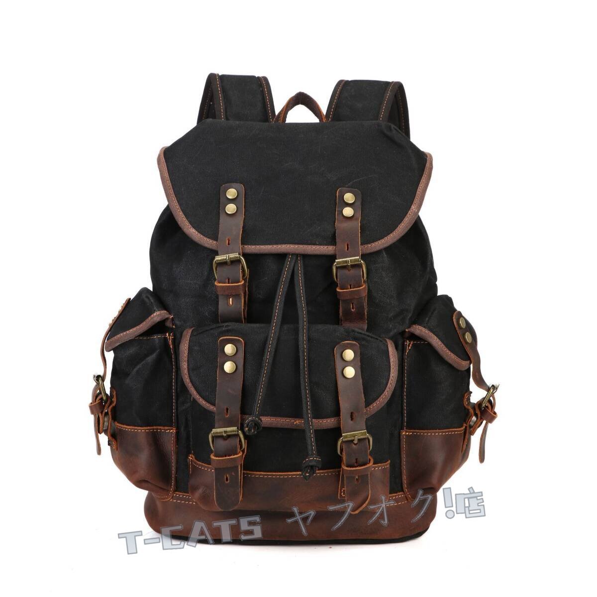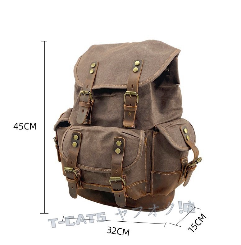■新しいヨーロッパとアメリカの古典的なレトロスタイルのバックパック、防水オイルワックスクロス+クレイジーホースレザーで作られ、レトロスタイルとトレンディなバックパック、出張、登山、レジャーの最初の選択肢です。