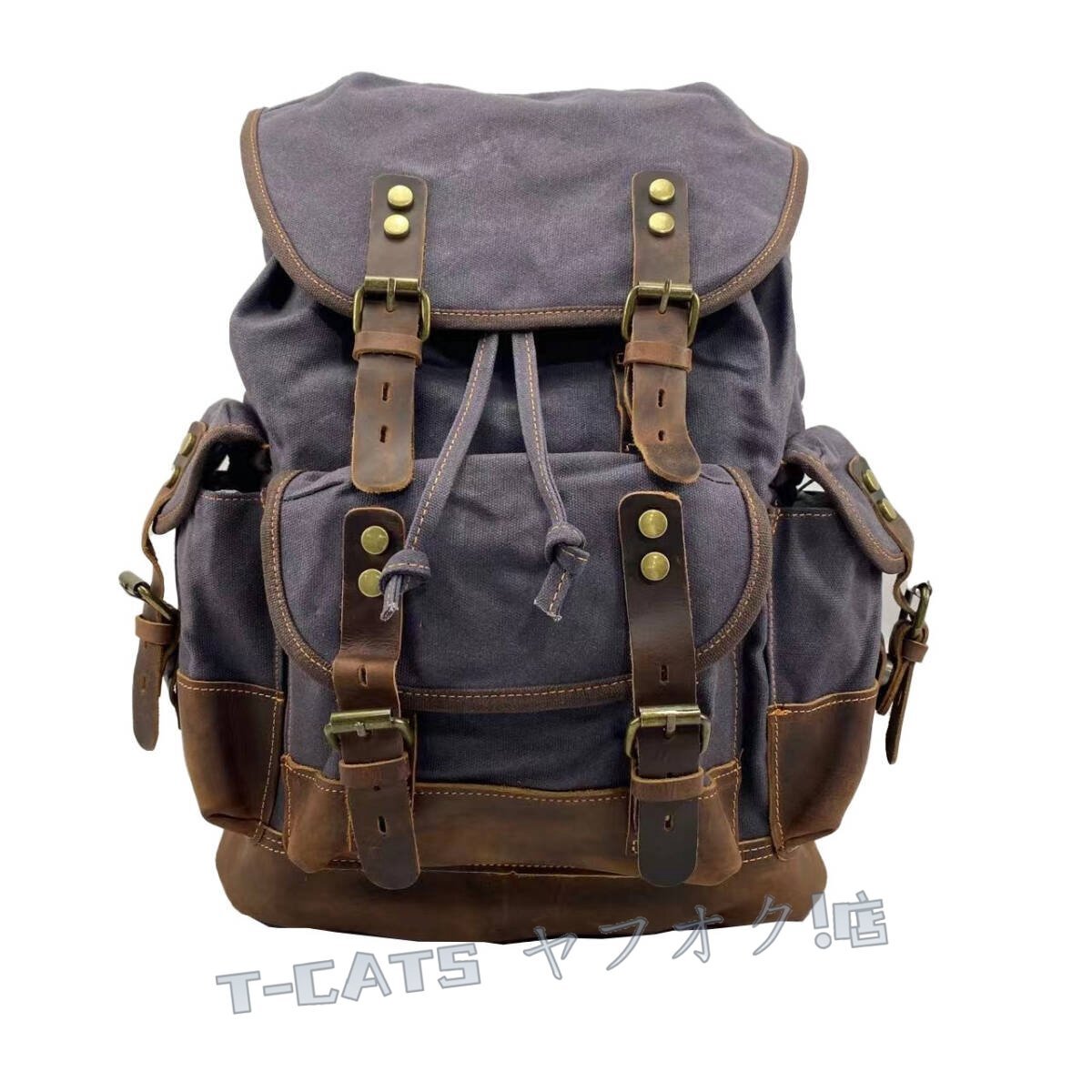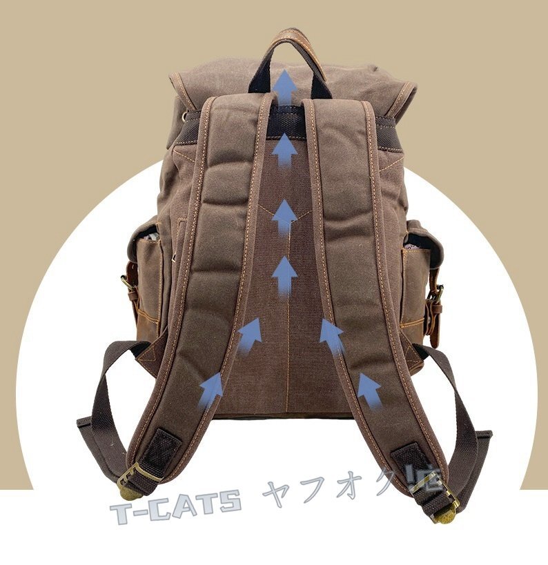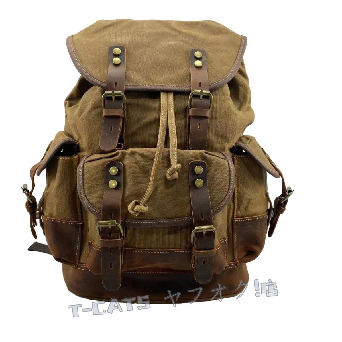 ■新しいヨーロッパとアメリカの古典的なレトロスタイルのバックパック、防水オイルワックスクロス+クレイジーホースレザーで作られ、レトロスタイルとトレンディなバックパック、出張、登山、レジャーの最初の選択肢です。