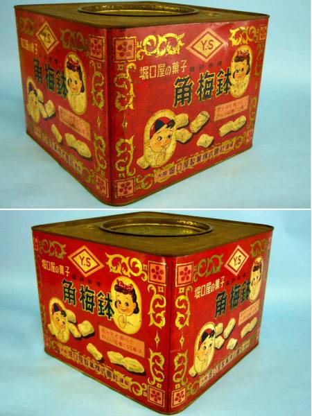| 商品名 | 古い【可愛い図柄・堀口屋の菓子・角梅鉢・ブリキ缶】 |