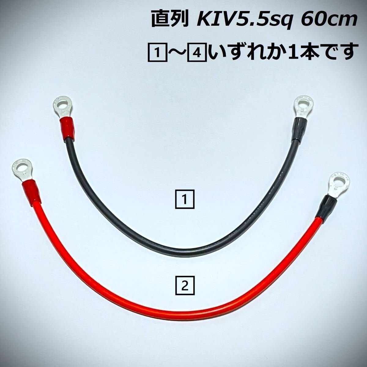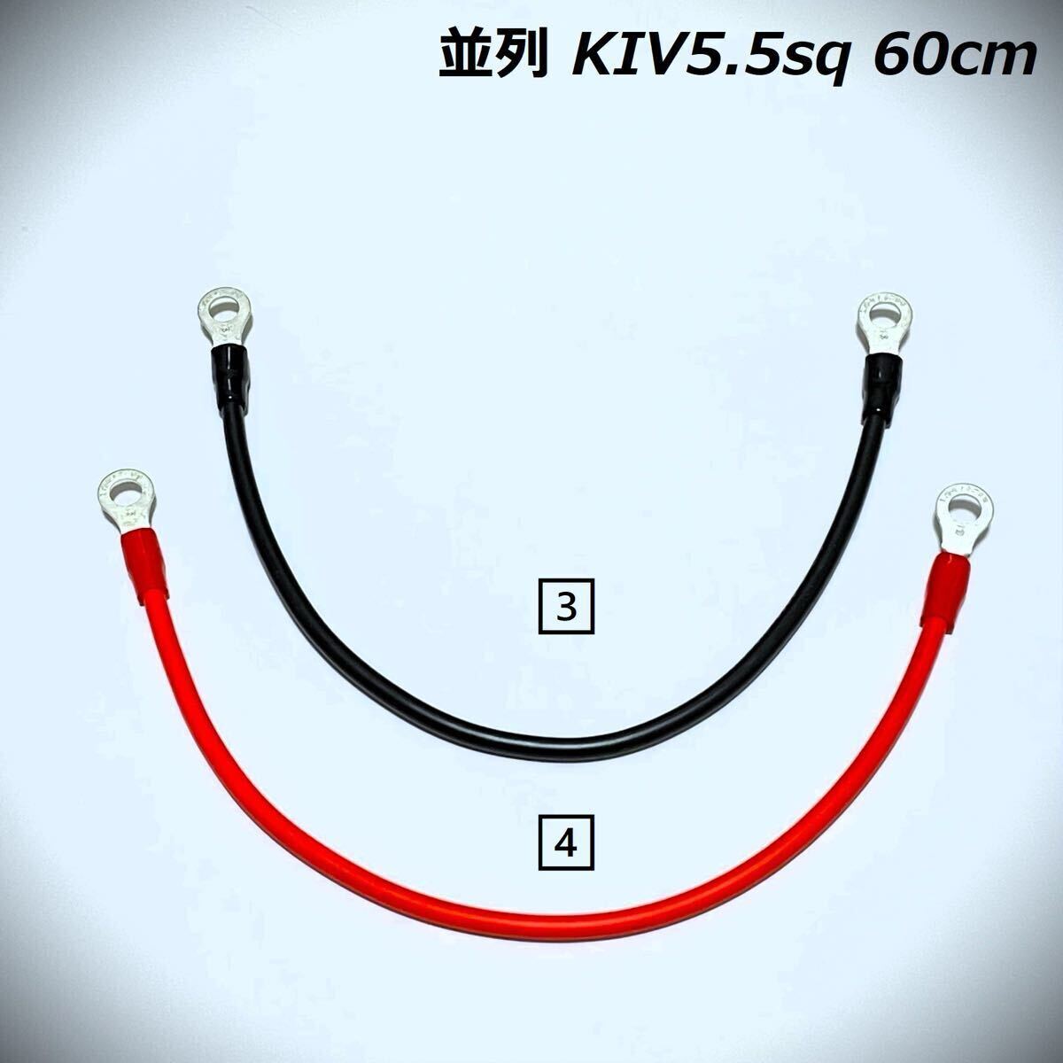 バッテリー2つを繋ぐジャンパーケーブルです。KIV5.5sq、許容電流49A、ケーブルの直径は5mm、長さ約60cmになります。端子は6mmか8mmからお選び頂けます。基本は8mmで発送致します。6mmが希望の場合は購入と同時に速やかに変更希望のコメントを頂けたら6mmに変更致します。電気工事資格者による自作品になります。(写真は参考商品です)
