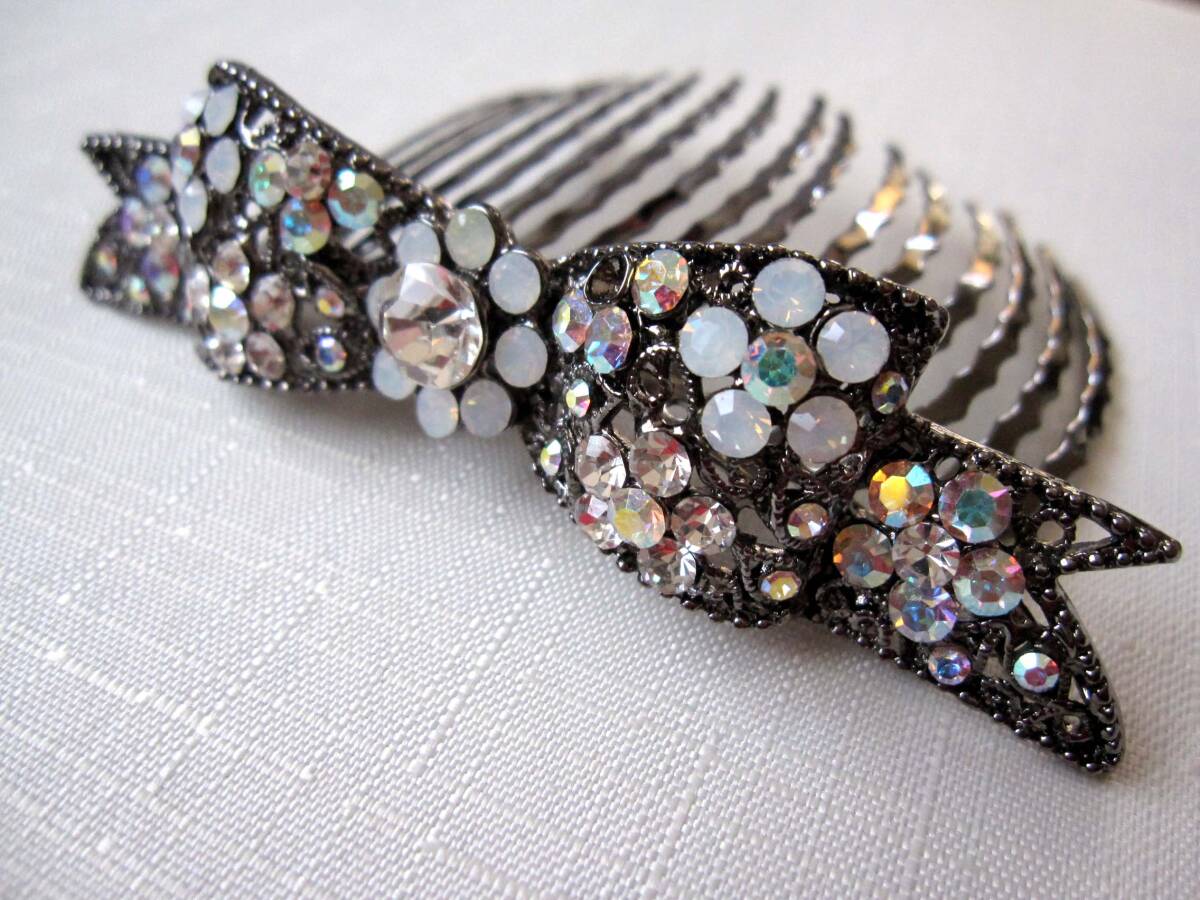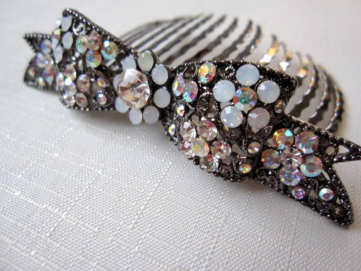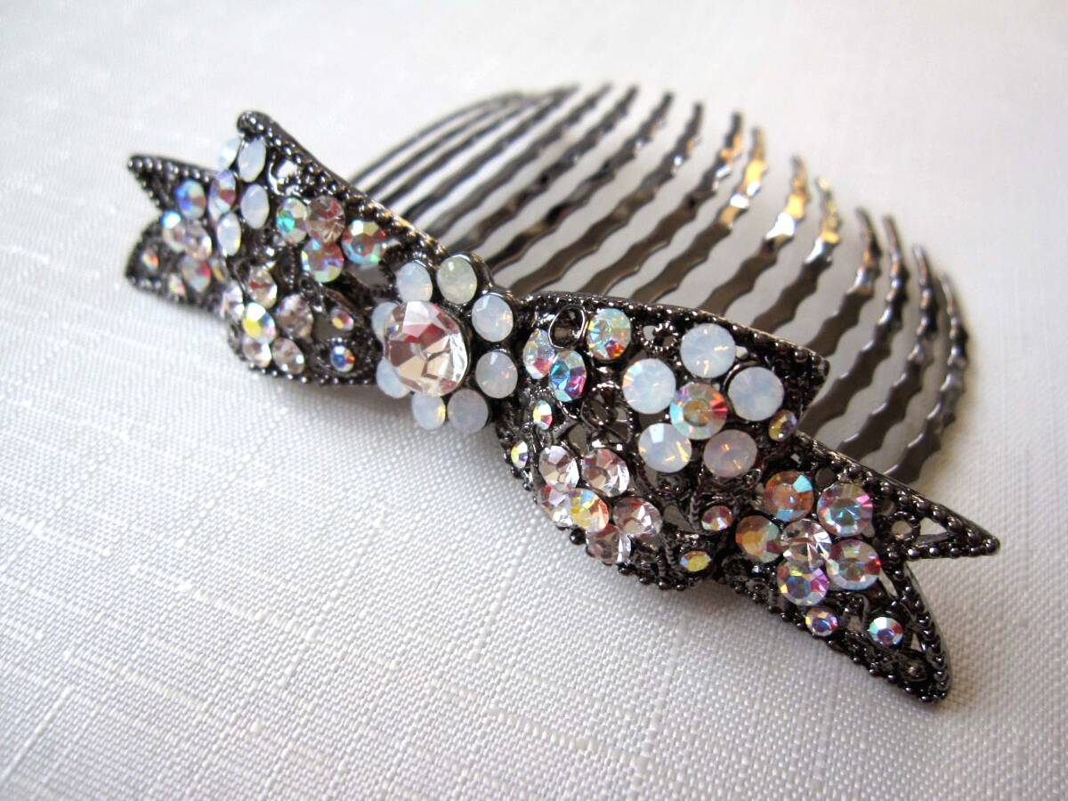 美品 夜会巻きコーム ホワイト系 ヘアアクセサリー*髪飾り*女子会*和装*スワロ*発表会*りぼん<210410-16>