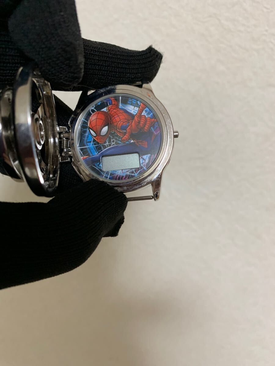 MARVEL マーベル スパイダーマンデザイ開閉式 デジタル腕時計フェイスのみ/ウォッチ/部品取り用/不動/ベルト欠品/小傷汚れ等/ジャンク扱