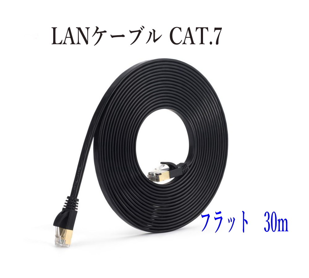 ★LANケーブル CAT7 30m フラット 10ギガ対応 シールドケーブル 薄型 金メッキ コネクタ
