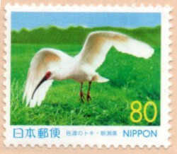 ふるさと切手 佐渡のトキ 新潟県 80円単片 1枚  1999年発行
