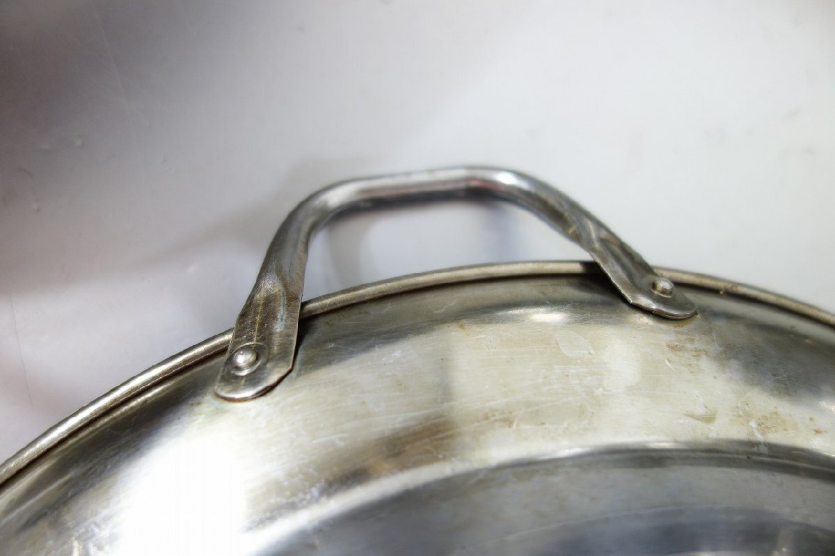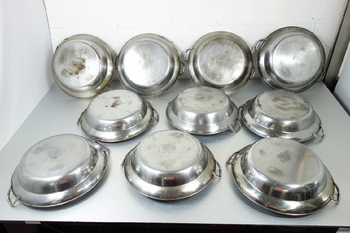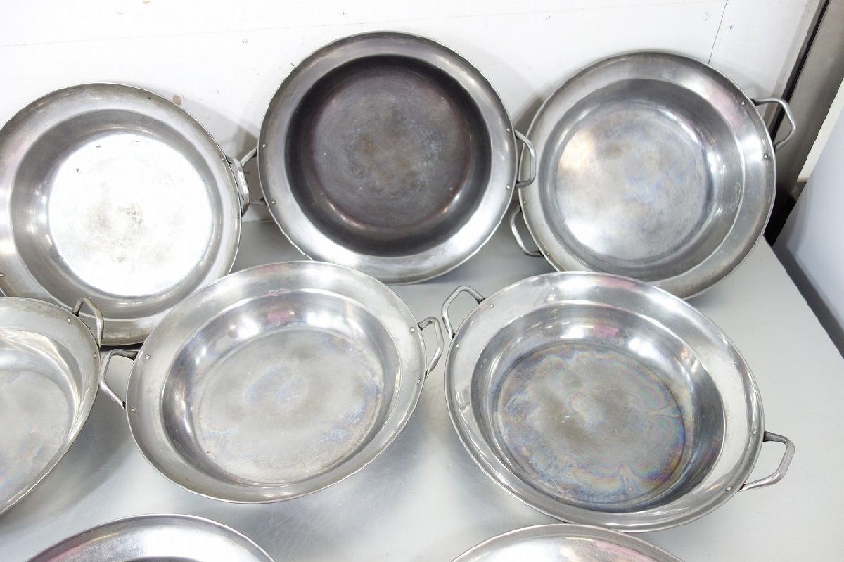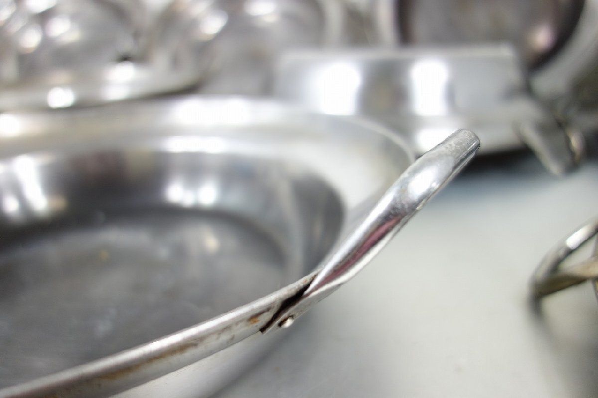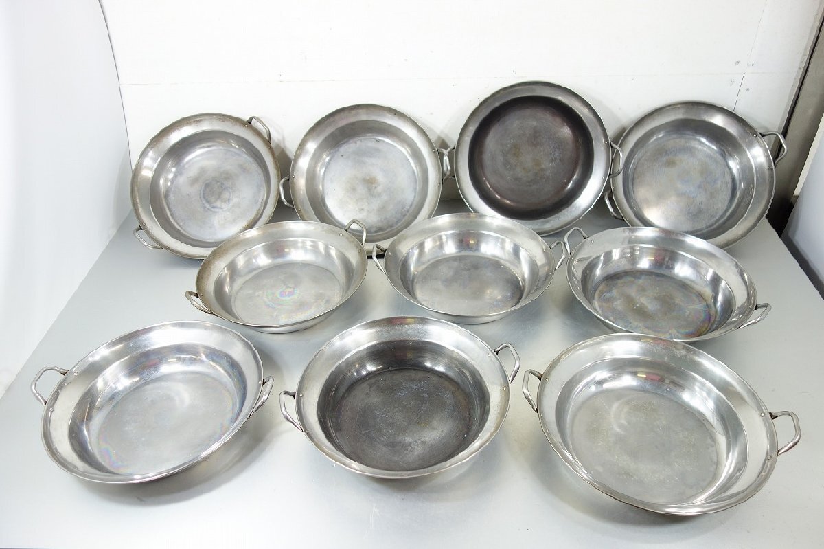 商品詳細 | 鍋 両手鍋 全10点 開口部径:33cm ステンレス製 業務用 厨房用品 調理器具 の出品となります サイズ 幅:39.6~40.8 奥行:33.6~34.0 高さ:7.0cm 持ち手までの高さ: 8.5~9.5cm 開口部径:33.0cm 開口部下段部分の径:27.0cm 中古品となりますので汚れ、キズ、へこみ、焦げ付き、変色がございます 鍋底に腐食がございます 画像10番目 中古品になりますので相応な使用感が御座います 管理番号373 |