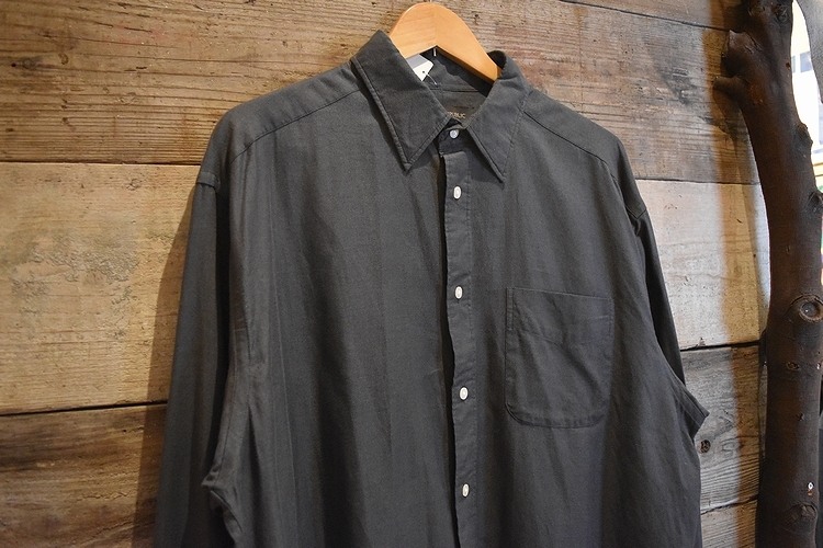 グッドスタイル◎90s~ビンテージBANANA REPUBLICバナナリパブリック長袖オールコットン無地シャツLダークグレー系100綿アメカジt49