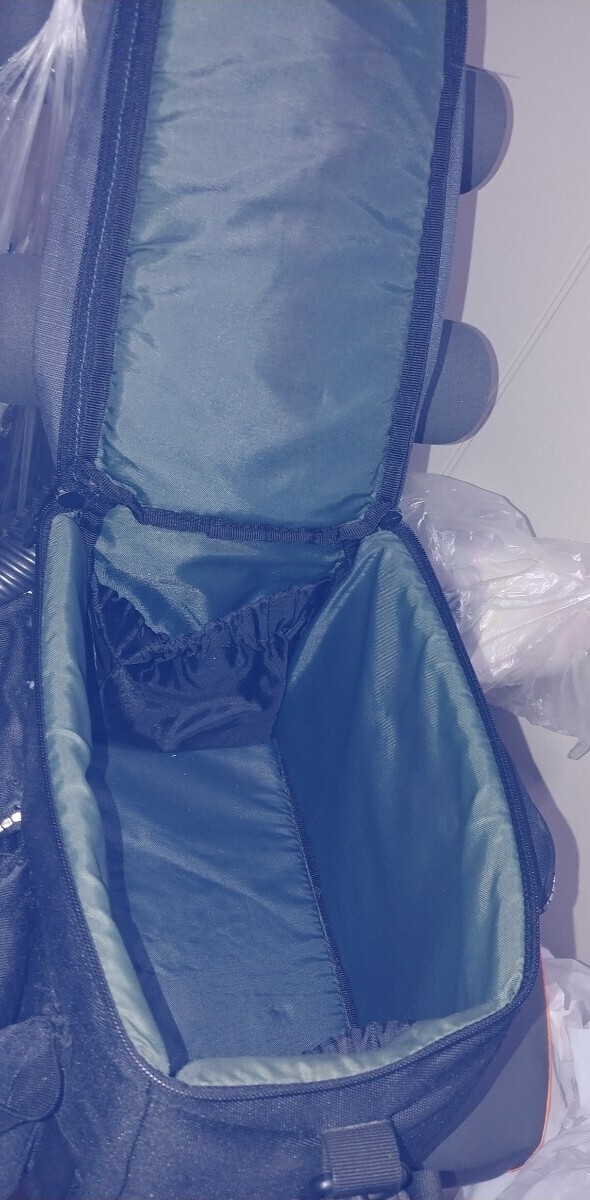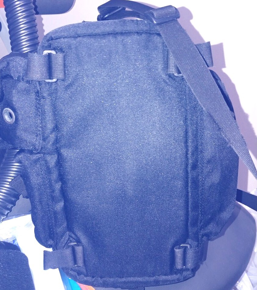 上面にベルクロ留めのみ、片面にロック有りと無しポケット一つずつ、反対側にジッパー付一番広いポケット、中にゴムのミニポケット二つ有ります。
