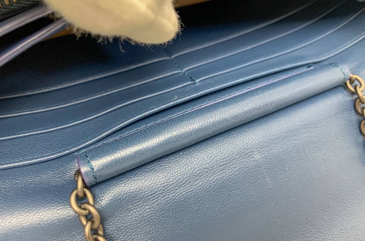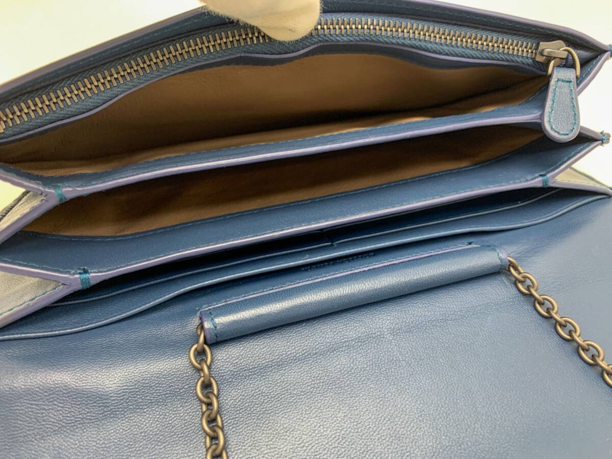 | ボッテガヴェネタより、チェーンウォレットになります。ちょこっとお出かけバックとしてもお使い頂けます。カード×6収納可能です。ファッションアイテムとしてもおすすめです!斜め掛け可能です。ABランク。サイドコバ、少々傷みあり。小銭入れうっすらコイン痕あり。内側に小さな爪痕のような小傷がうっすらとございますが、大きな問題のない比較的綺麗なお品になります。 | |