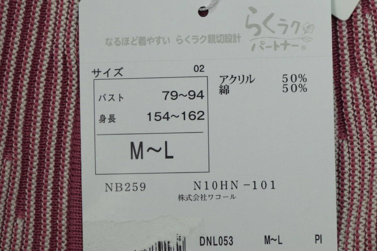 ワコール/らくラクパートナーの羽織もの・肩掛け・ケープ(M-L) 、新品です。 らくラクパートナーはシニア、シルバー層に“なるほど着やすい らくラク親切設計” をコンセプトとして作られたブランドです。 サイズはM-Lサイズ。身長154-162。バスト79-94㎝。 素材はアクリル50%、綿50%。 表記カラーはピンクです。