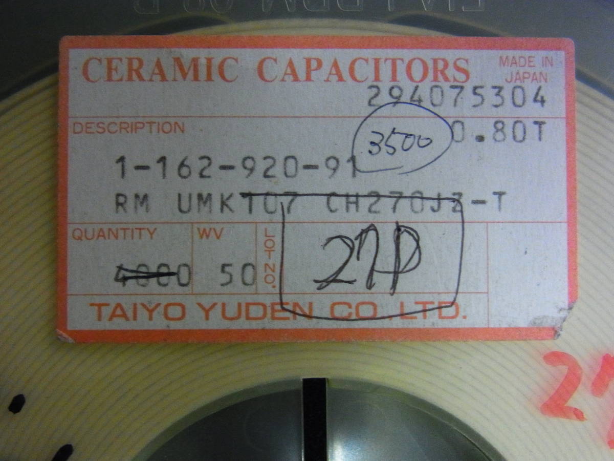 太陽誘電 1608型セラミックコンデンサ 27pF 5% 50V UMK107CH270JZ-T 3500個-BOX147