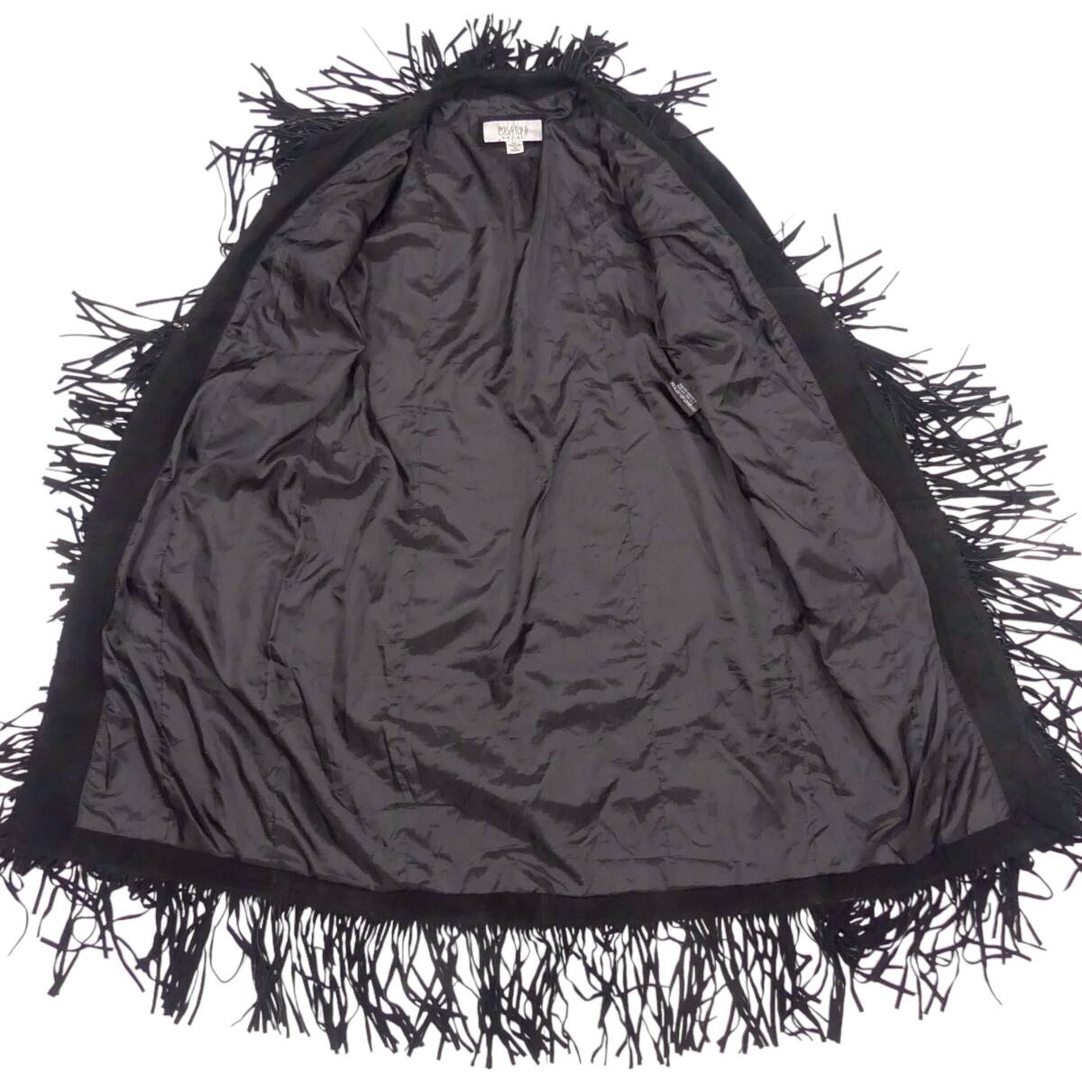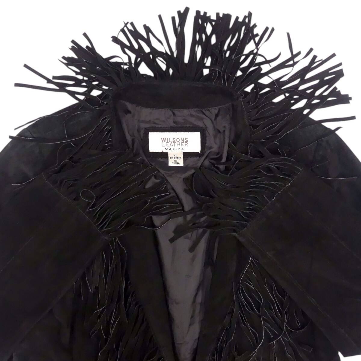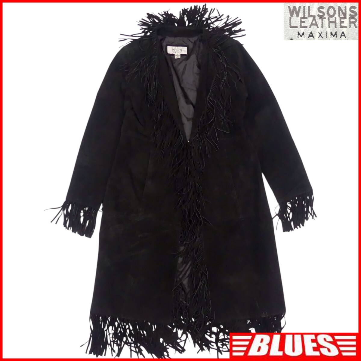 即決★WILSONS LEATHER★メンズ XL レザーチェスターコート ウィルソンズレザー 黒 フリンジ 本革 ジャケット 本皮 革ジャン ロングコート