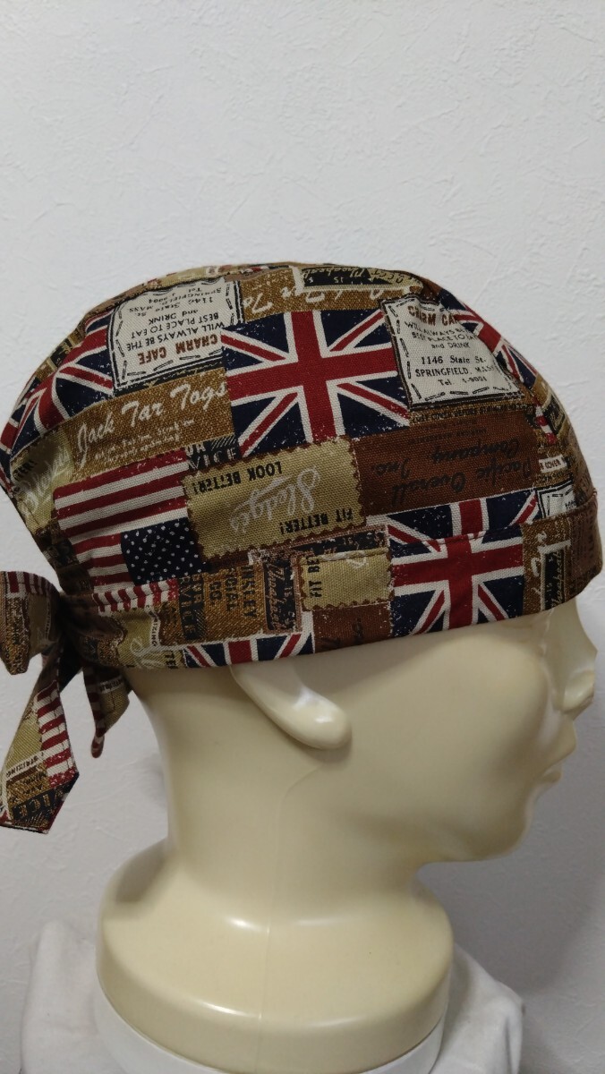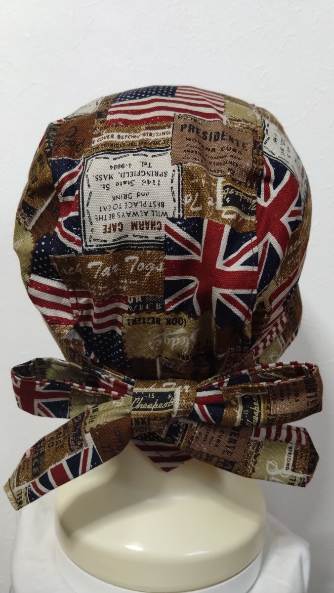 短★バンダナキャップ★ハンドメイド デニム柄 国旗 ブラウン 茶
