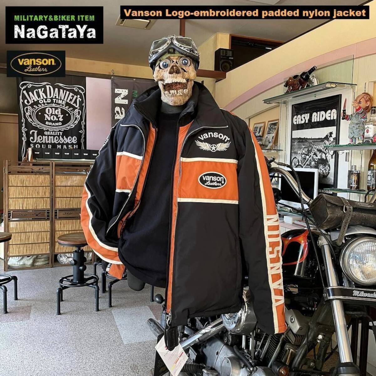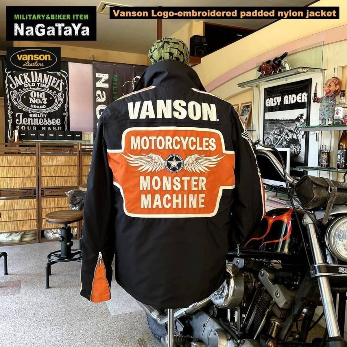 ★ バンソン VANSON ロゴ刺繍 中綿入り ナイロン レーサージャケット NVJK-2207 メンズ バイク バイカー アウター ★