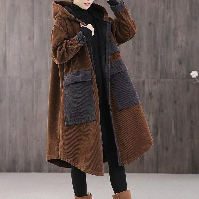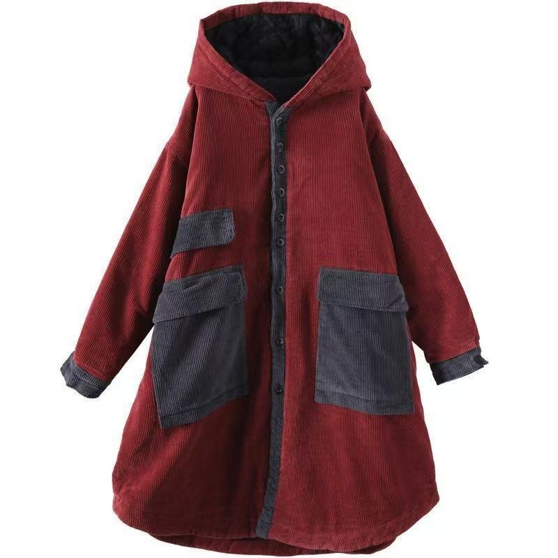 LRM5509★中綿コート アウター ロングコート 厚手 秋冬コーデュロィ コート 長袖 レディース フード付き 大きいポケッ