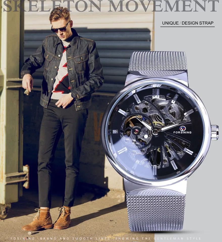 メンズ ウォッチ スケルトン 手巻き 腕時計 海外ブランド モデル 高級 人気 ベルト ビジネス 防水 ブラックシルバー ZCL1034