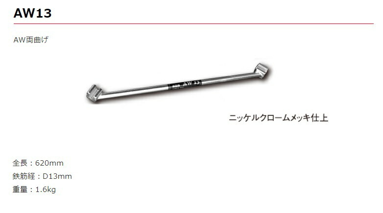 MIKI両曲ハッカーAW13 ニッケルクロームメッキ仕上■仕様全長:620mm鉄筋経:D13mm重量:1.6kg※この商品はすべて取り寄せになります。 10~21日程度納期がかかります。ご注意ください。