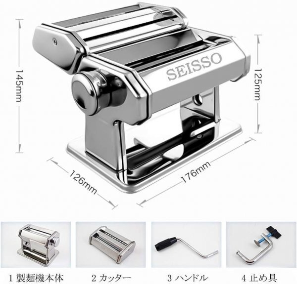水洗える製麺機 パスタマシン そば打ち機 うどん 餃子など 分離式 厚さ幅調節可能 2種類カッター お手入れ簡単 ローラーカッター式