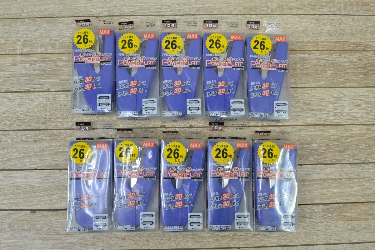 C1723■長期保管 未使用品■MAX マックス■ホッチキス■パワーフラット HD-10DFL TYPE 10号 10個セット■26枚とじ■長さ(約)10.5㎝
