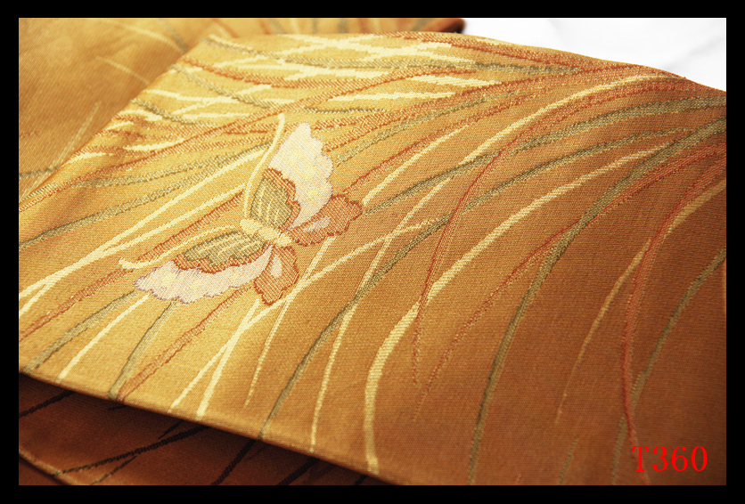 蔵【T360】厳選美品 蝶紋 狐色地 気品豊かに 正絹純金糸高級美術名古屋帯 ◇検◇簪着物袋帯和装小物帯締め