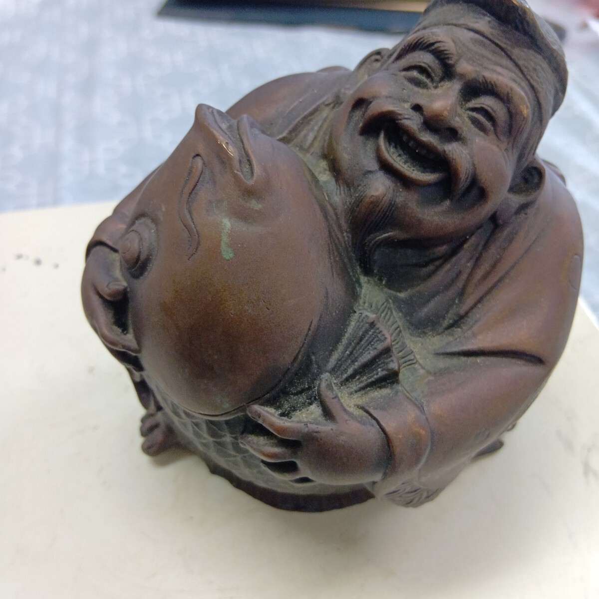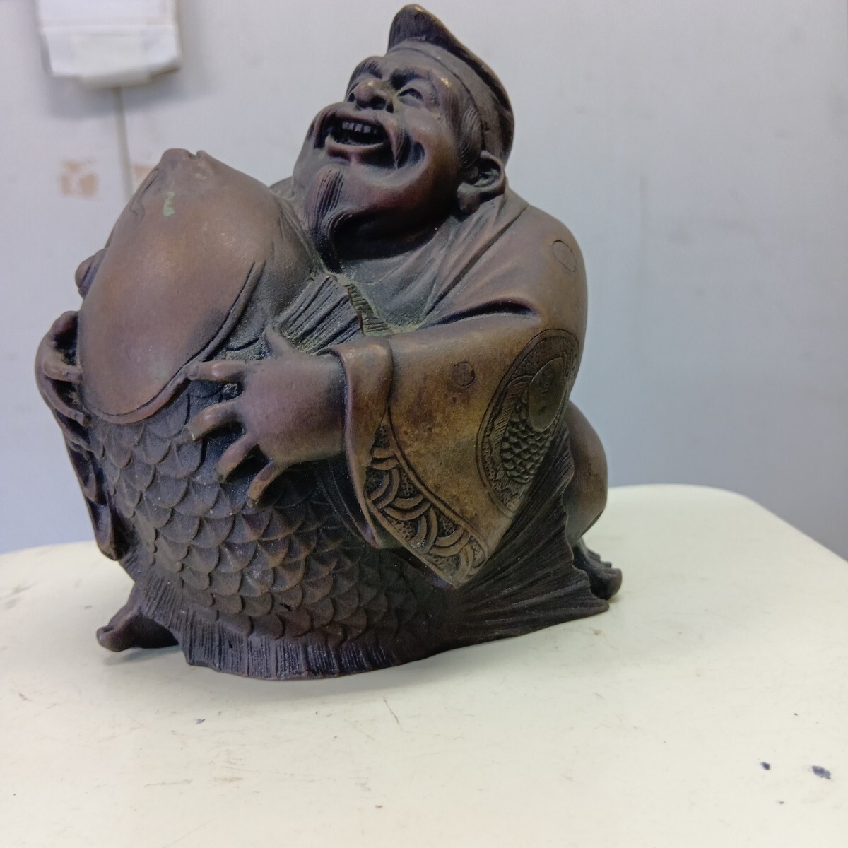 恵比寿様 重さ1520g 重いです 蔵出し品の為汚れ傷有り 現状品 時代物 約12×11×9cm 良く画像を御覧頂き入札をお考え下さい。