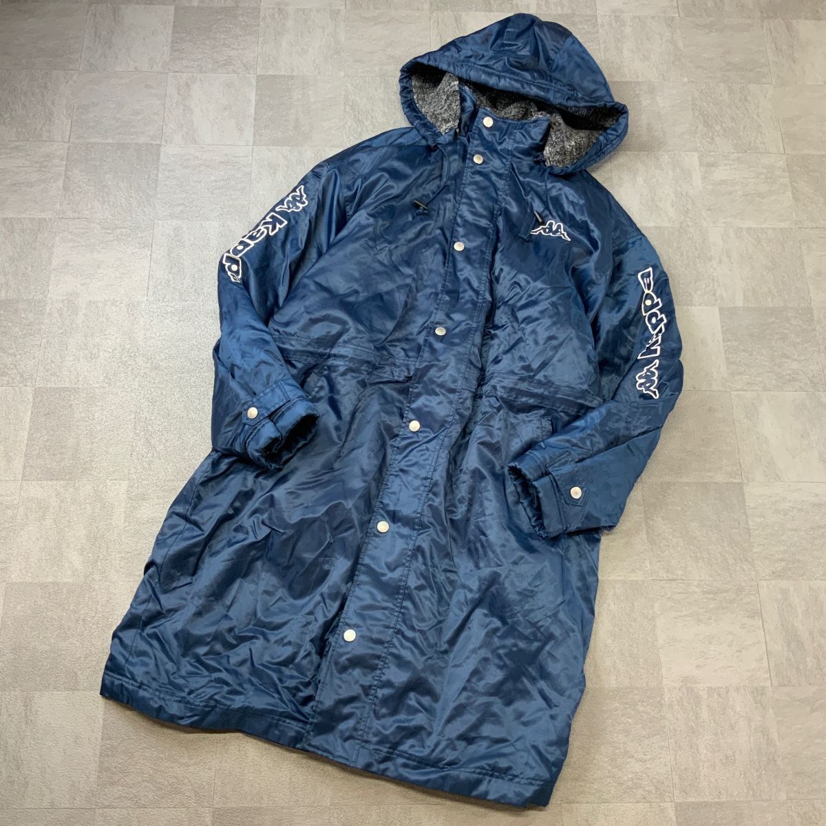 良品 Kappa カッパ ビッグ刺繍ロゴ 内ボア ベンチコート メンズ Oサイズ ネイビー グレー ロングコート