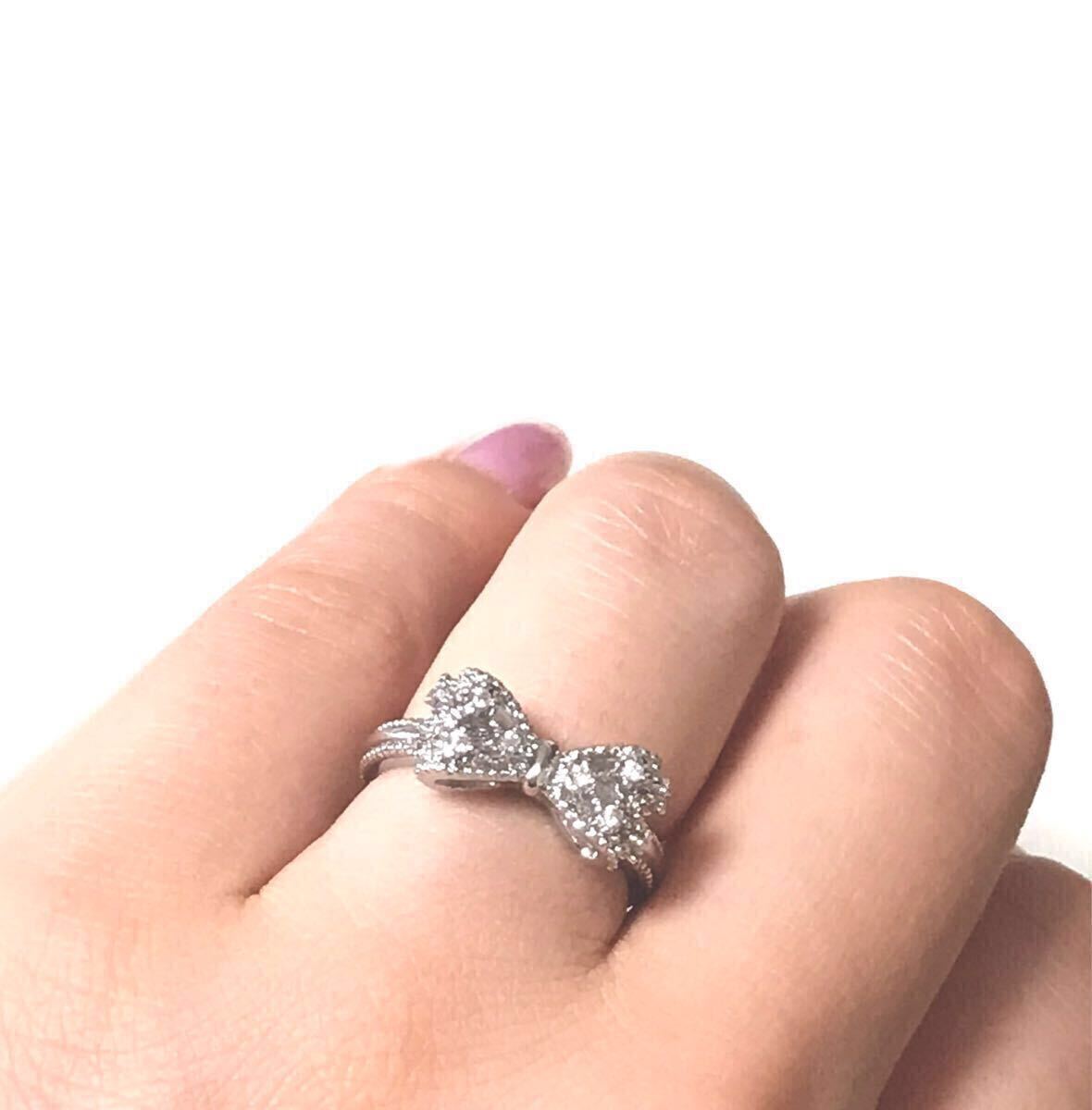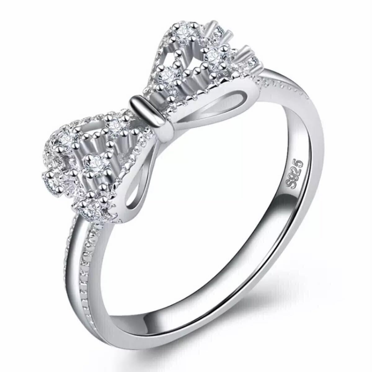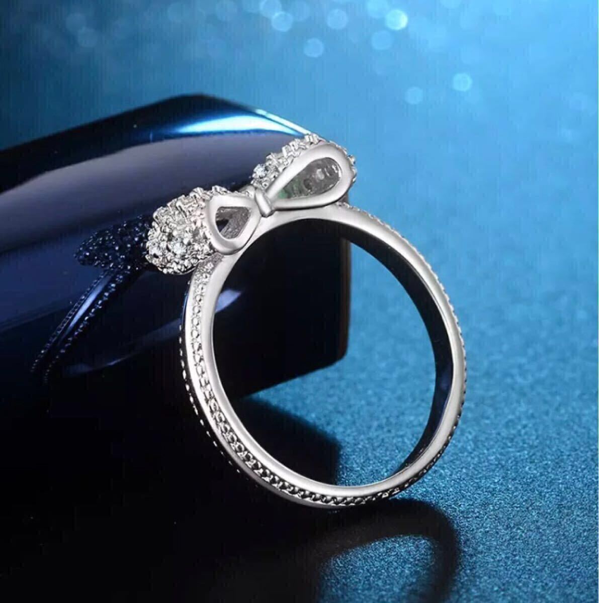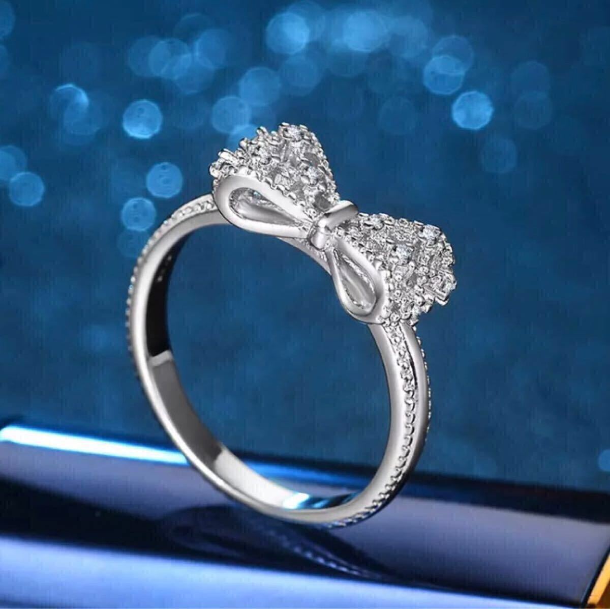 立体的なリボンのデザインと、そこに埋め込まれたAAACZリングの輝きが可愛らしい、フェミニンなデザインのリングです。どんなファッションにも良く合うお品です。