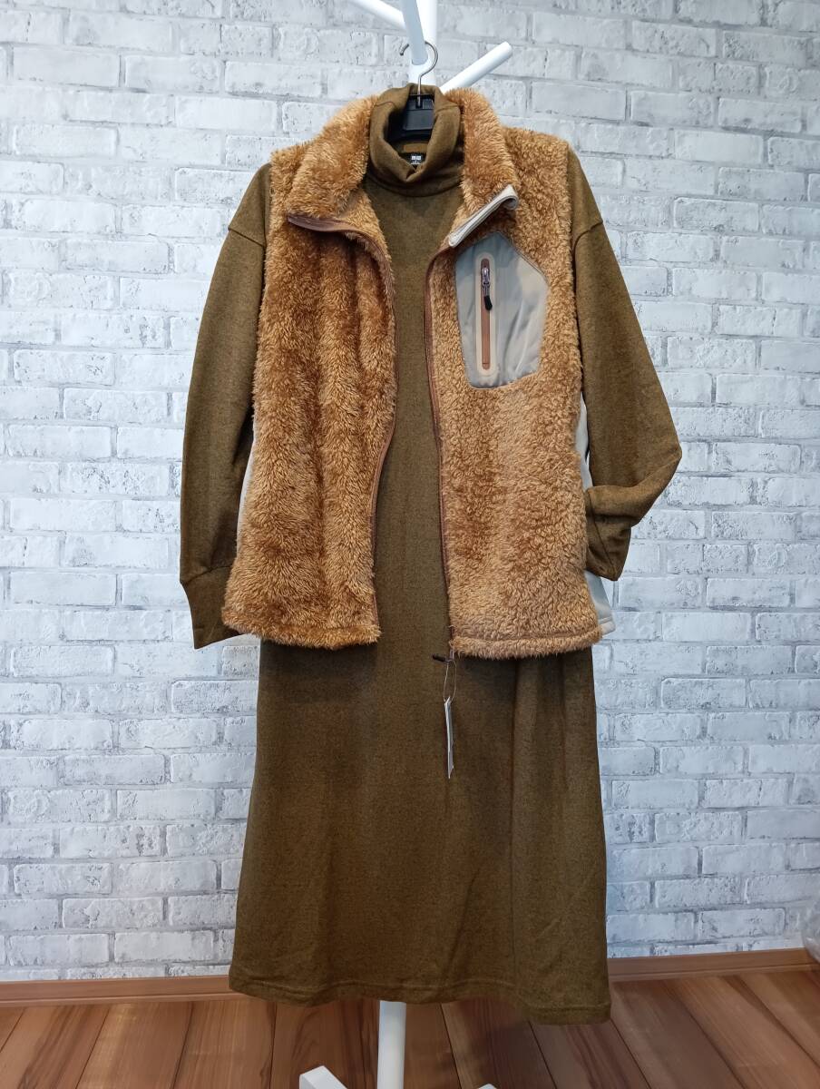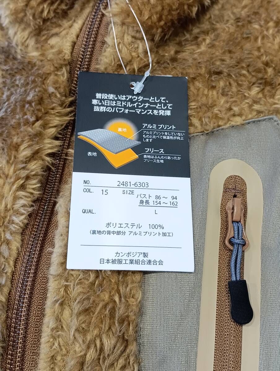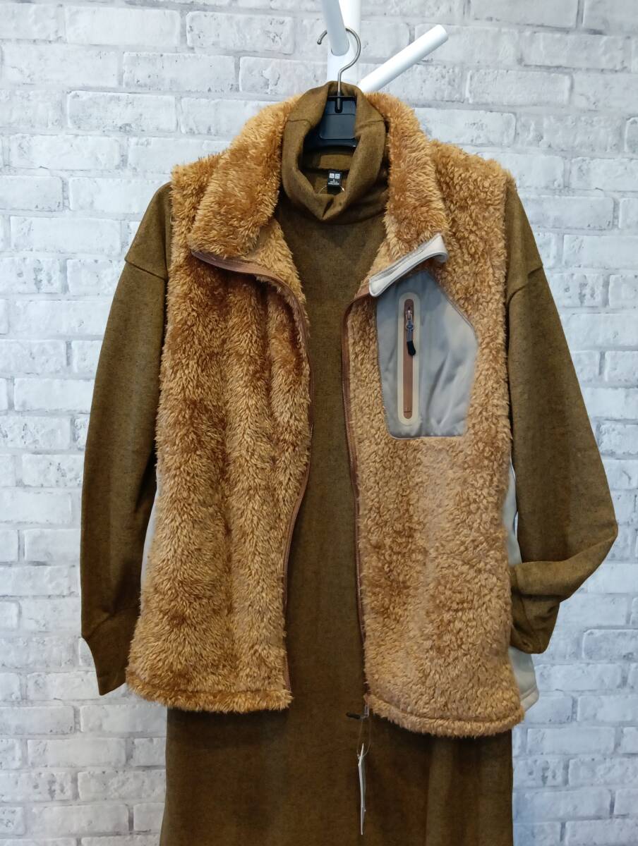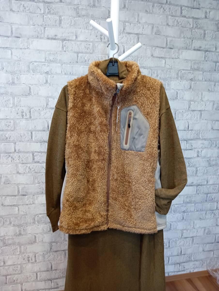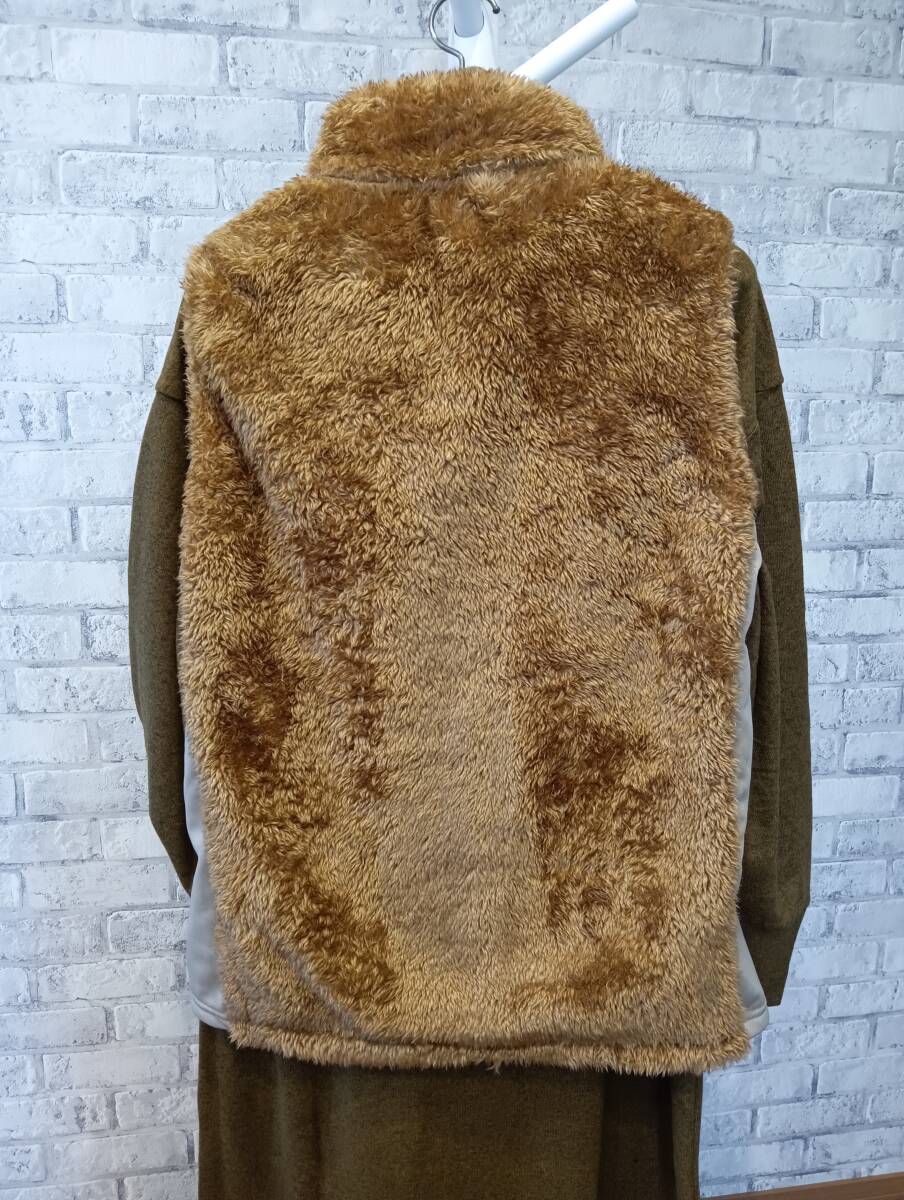 L 新品 暖か軽量 ふわふわフリース 裏アルミ ベスト ゴールドブラウン