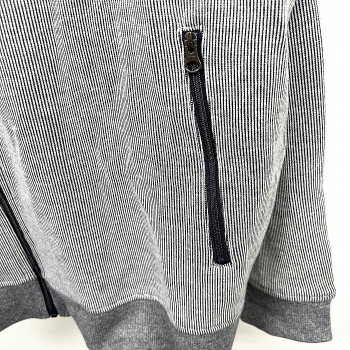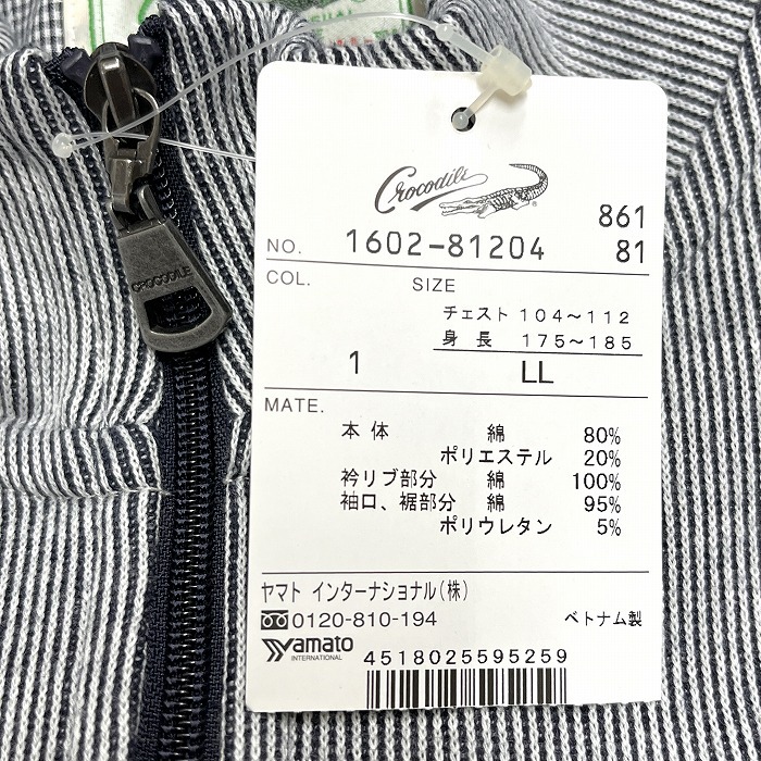 商品タイトル | 【新品】Crocodile カットソーブルゾン ジャケット マイクロストライプ ハイネック 裏地無し 長袖 綿×ポリ LL ネイビー 紺×白 メンズ |