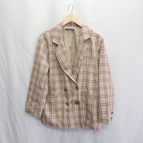 ◇ Θ Heather ヘザー チェック ダブルボタン 長袖 ジャケット サイズF ベージュ系 レディース E