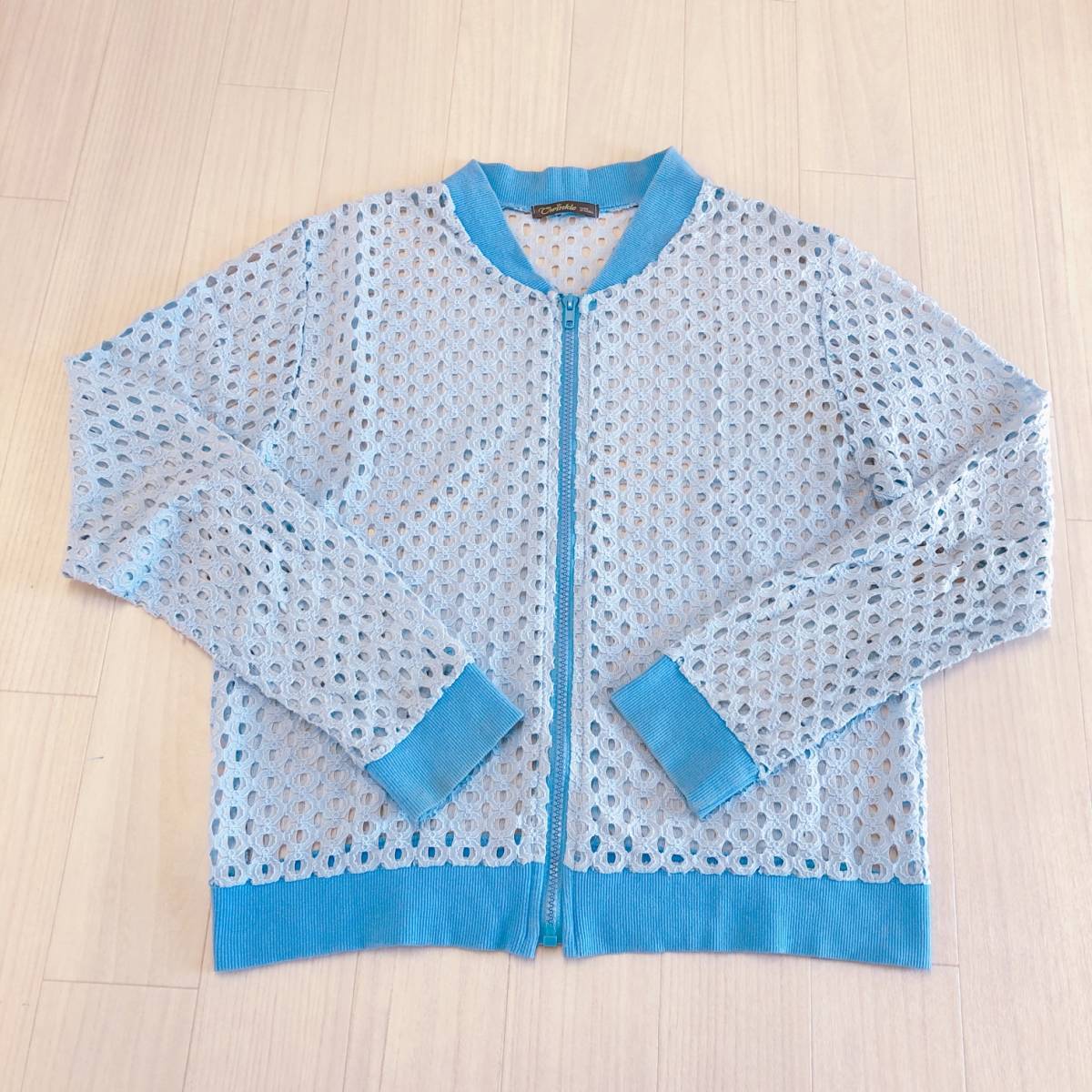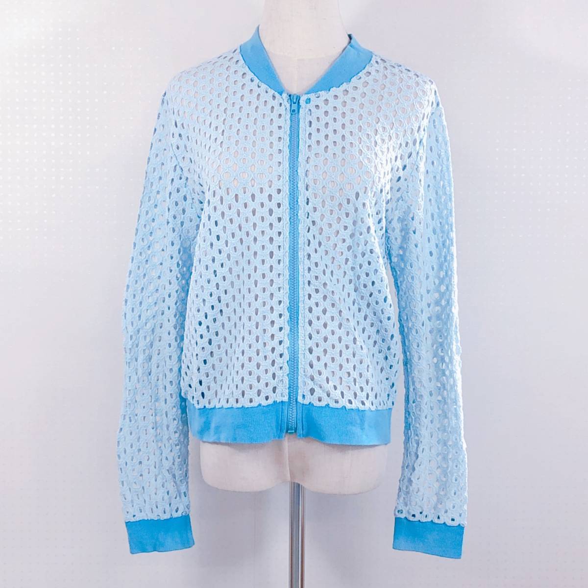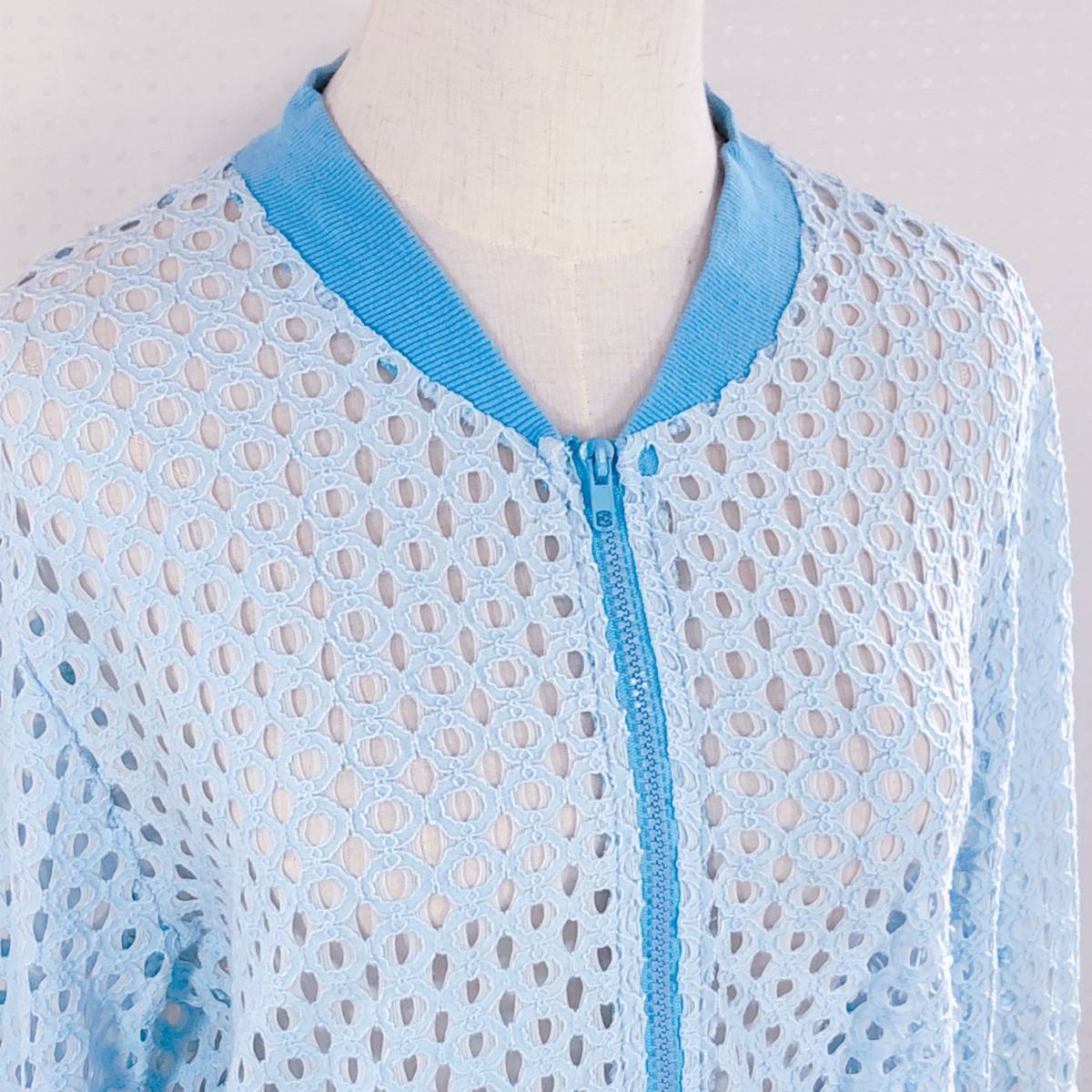 YAS1065 Twinkle レディース トップス ジャンパー 長袖 韓国製 チャック 透け感 水色 カジュアル 涼しげ シンプル かわいい 春夏 おしゃれ