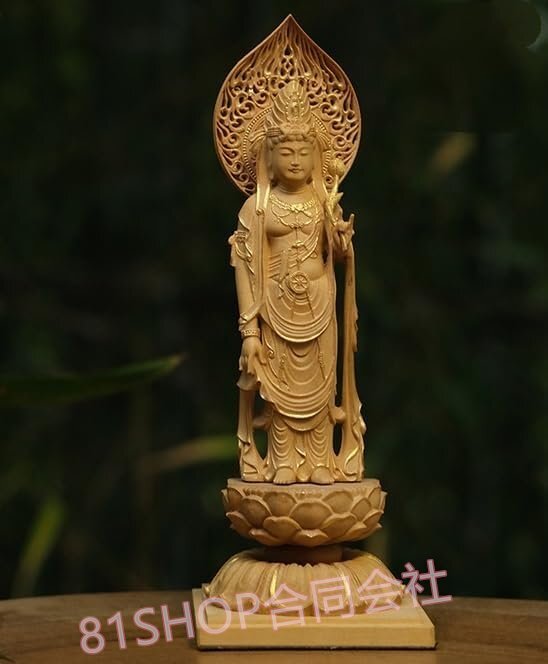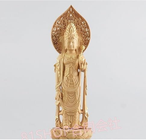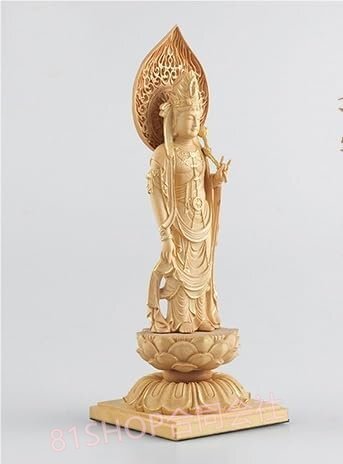 「81SHOP」 仏像 聖観音菩薩 立像 観世音菩薩 観自在菩薩 六観音 観音像 桧木 木彫仏像 木彫り 木製高13CM