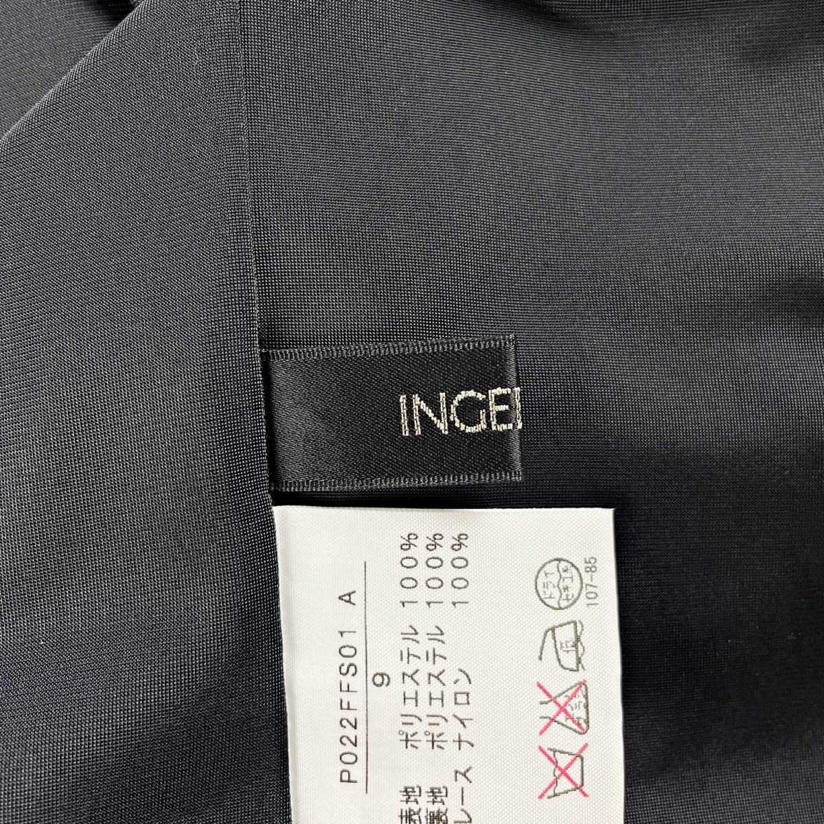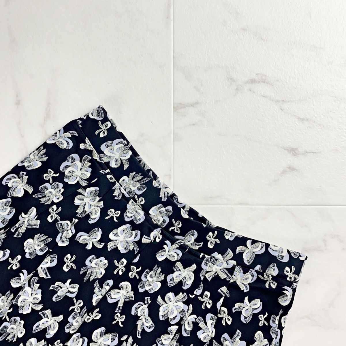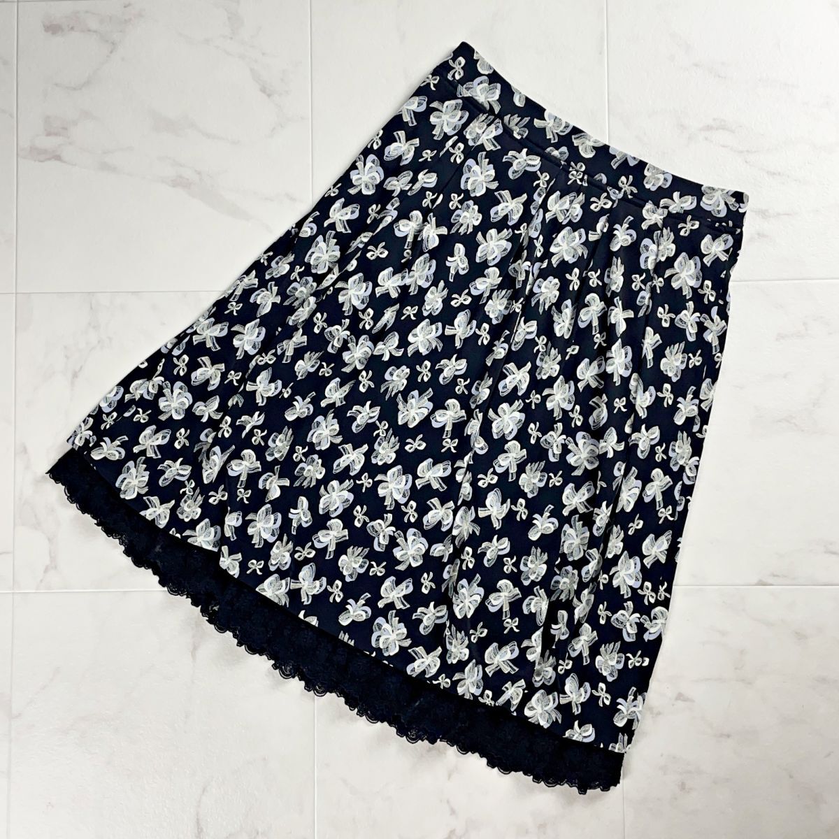 美品 INGEBORG インゲボルグ リボン柄 フレアスカート ひざ丈 刺繍レース 総柄 黒 ブラック サイズ9*VC114