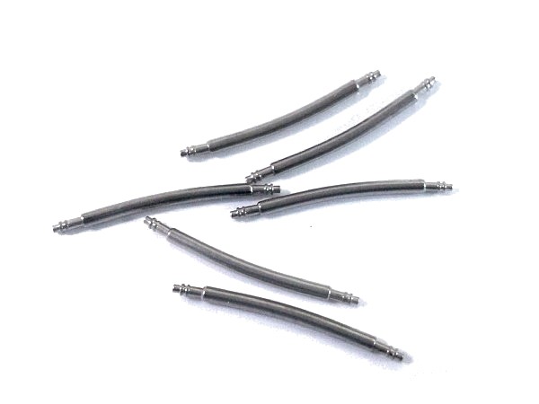 腕時計用 ステンレス カーブバネ棒 腕時計とベルトの間隔を調整するバネ棒です。 厚めのベルトを取り付けるときに使用します。 ダブルフランジタイプ 取付サイズ22mm用 太さ:1,5mm 本数:6本 ※22mmとはバネ棒の全長ではございません。 取り付けする部分の幅です。交換作業やご使用は自己責任でお願いいたします。 ※画像はサンプルです。 |