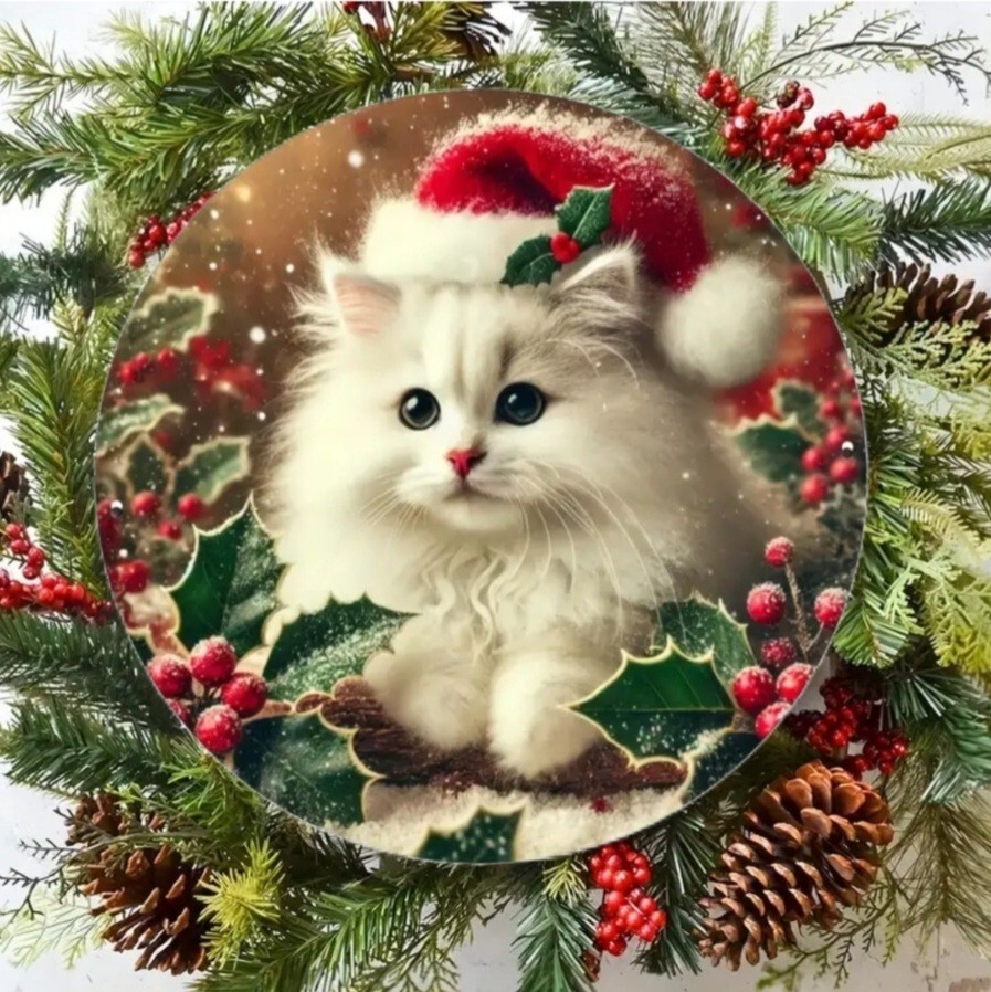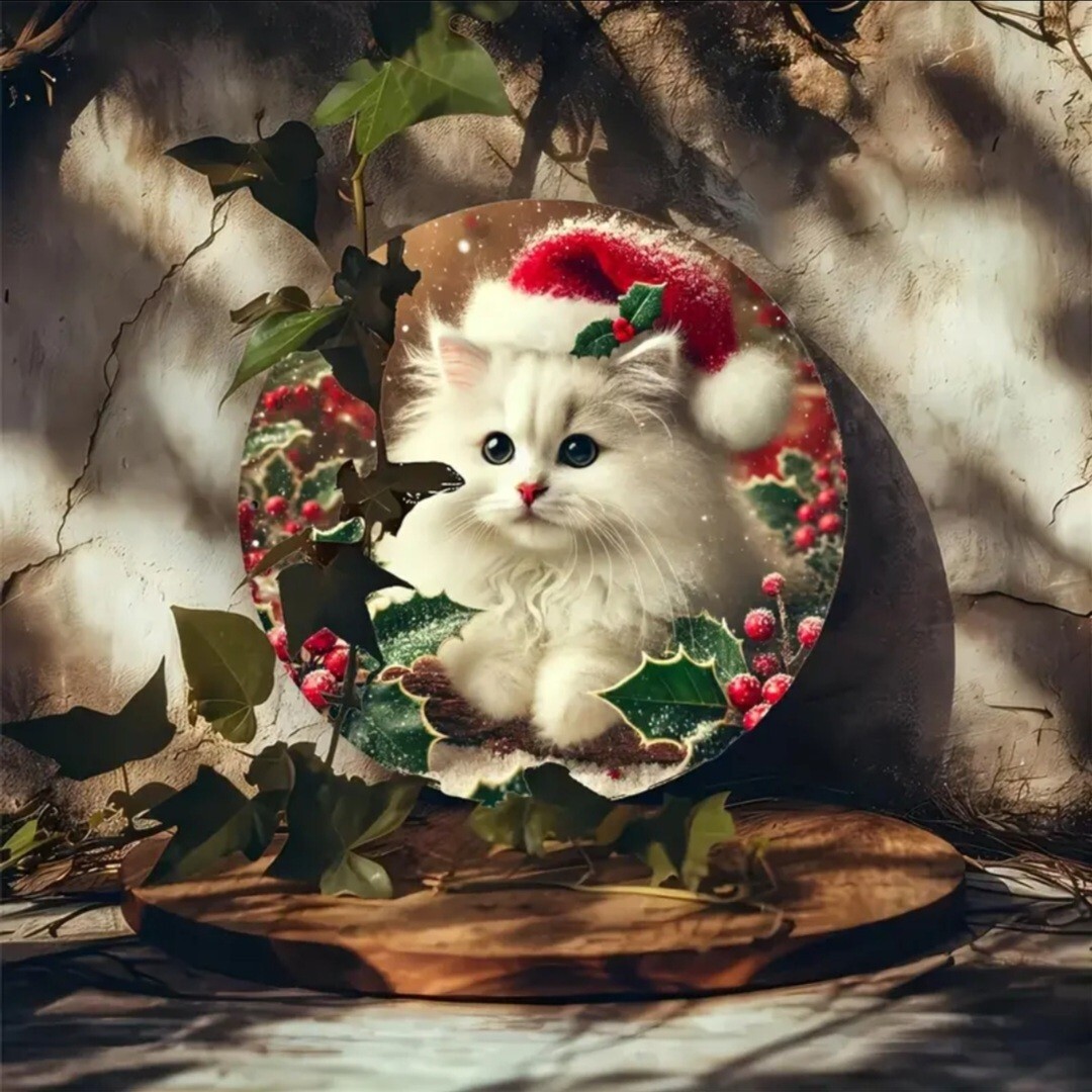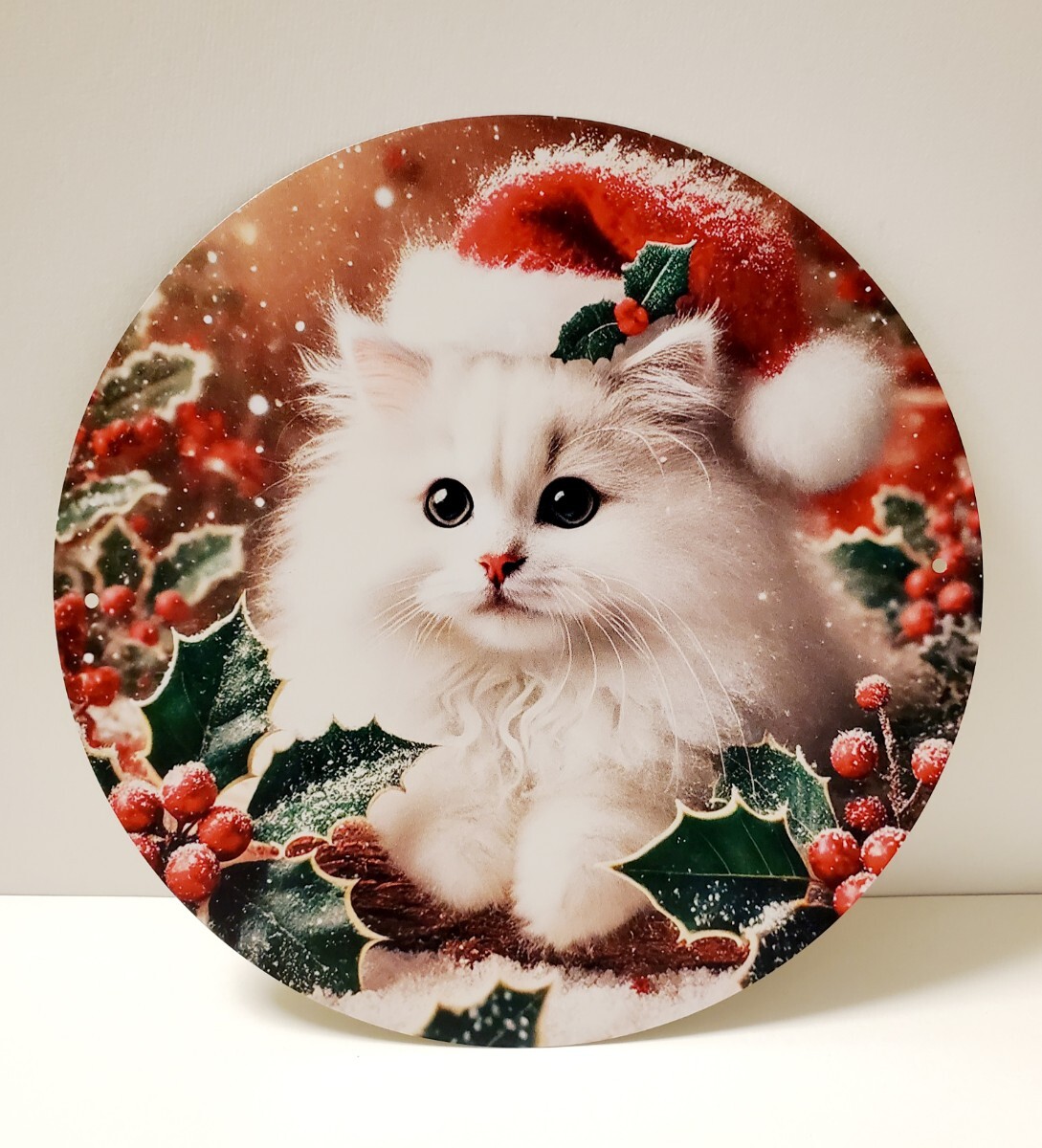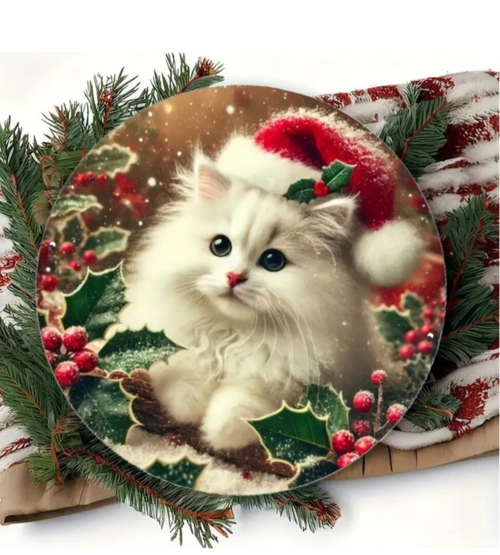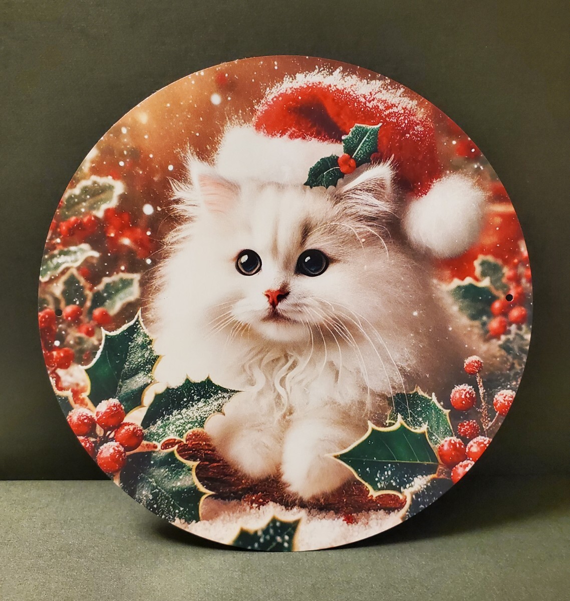 アルミニウムのメタルボードに3Dのプリント技術で描かれた猫のメタルアートです。