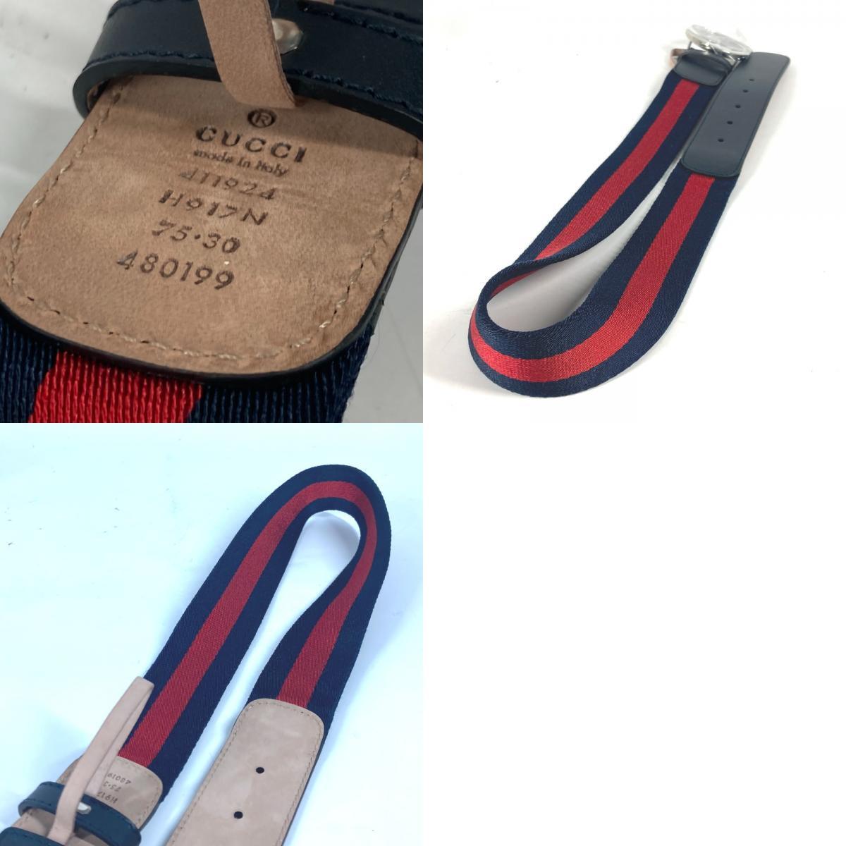 GUCCI グッチ 411924 GG インターロッキングG ベルト アクセサリー ベルト ネイビー レディース【中古】