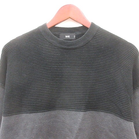 ハレ HARE ニット セーター 長袖 切替 S グレー 黒 ブラック /MN メンズ