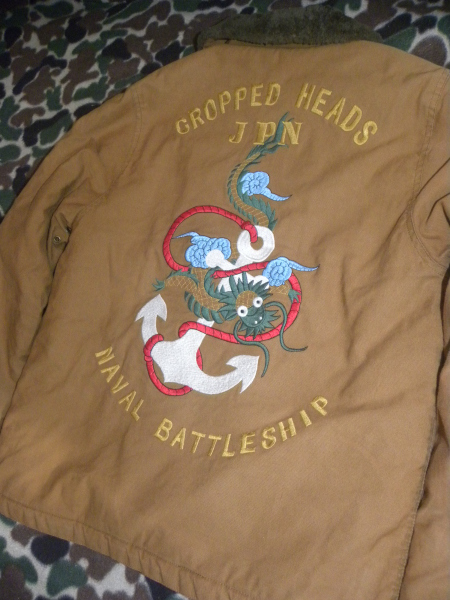 ★激レア★クロップドヘッズ.襟羊毛.海軍.龍日本和柄刺繍N-1タイプスカジャン.スーベニアジャケット★CROPPED HEADS★