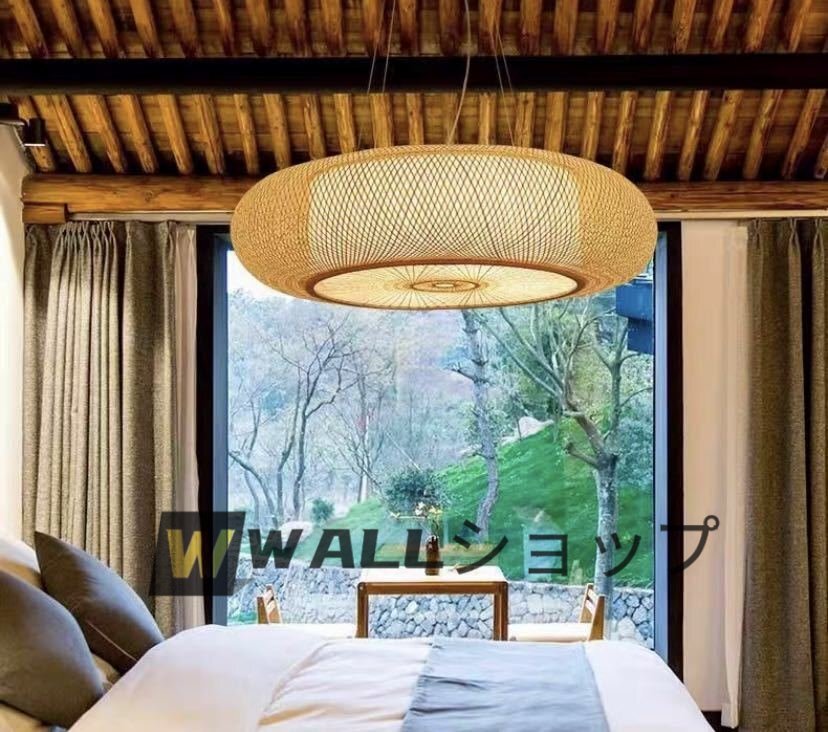新品登場☆ 丸型 LEDシーリングライト リビングルームライト ベッドルームライト 竹織りランプ 吊り下げ照明 ペンダントライト 天井照明
