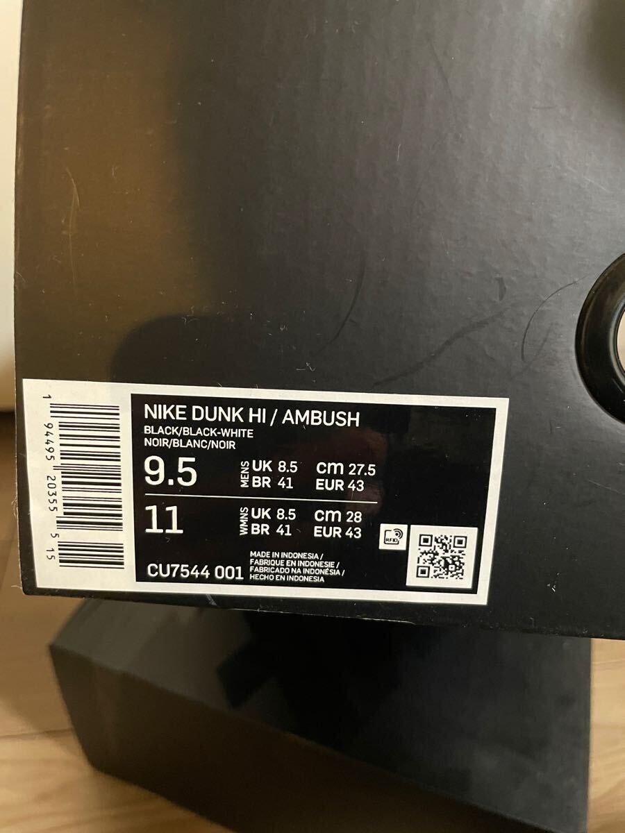 ゴッテム品 黒タグあり NIKE×AMBUSH/ナイキ×アンブッシュ 白黒 DUNK HIGH ダンク ハイ 27.5 センチ US9.5