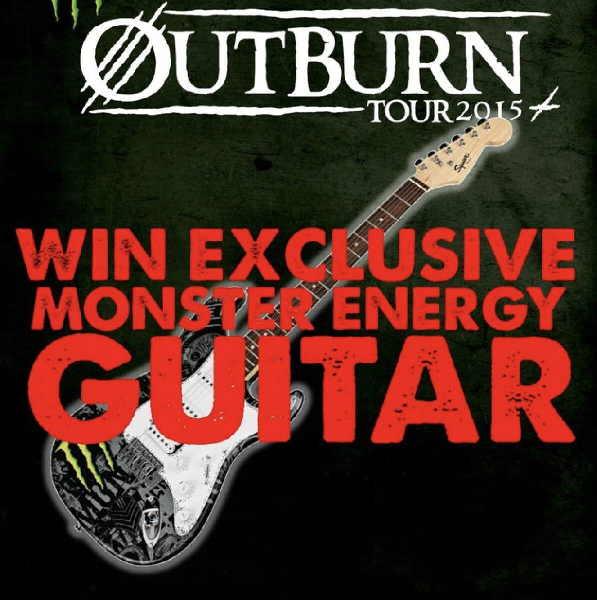 飲料水のMonster ENERGYがOUTBURN Bandツアーに協賛し、コラボ商品としてFender Squier Guitarを製造しました。