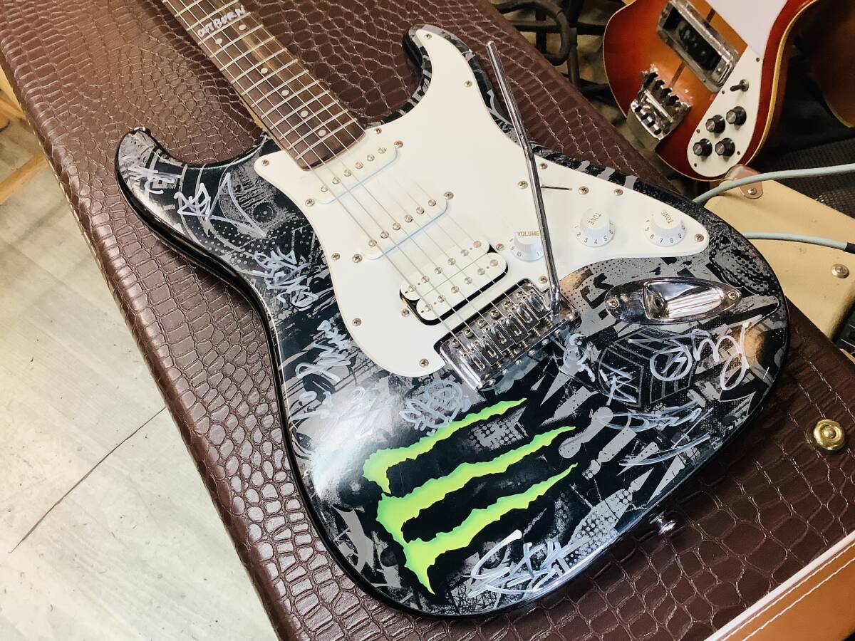 貴重なMonster ENERGY Fender Guitar OUTBURNツアーの限定サイン入りギター Fender Squier Stratocaster ギター