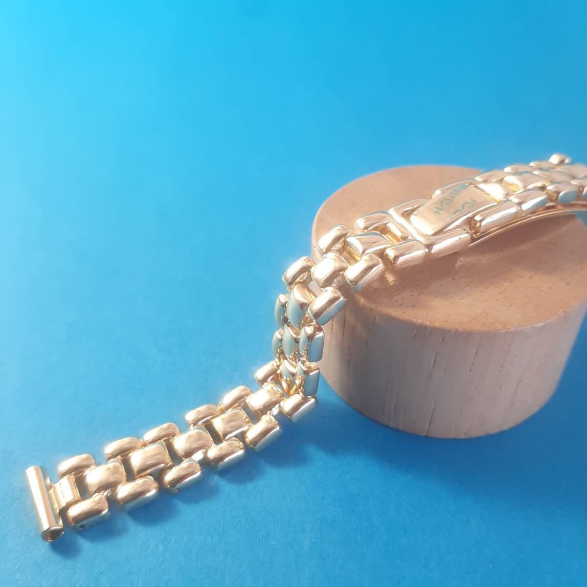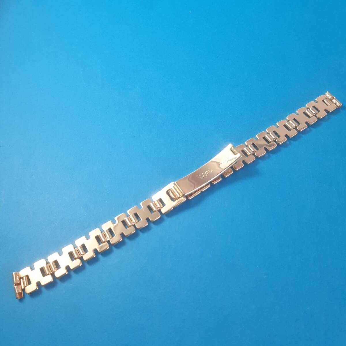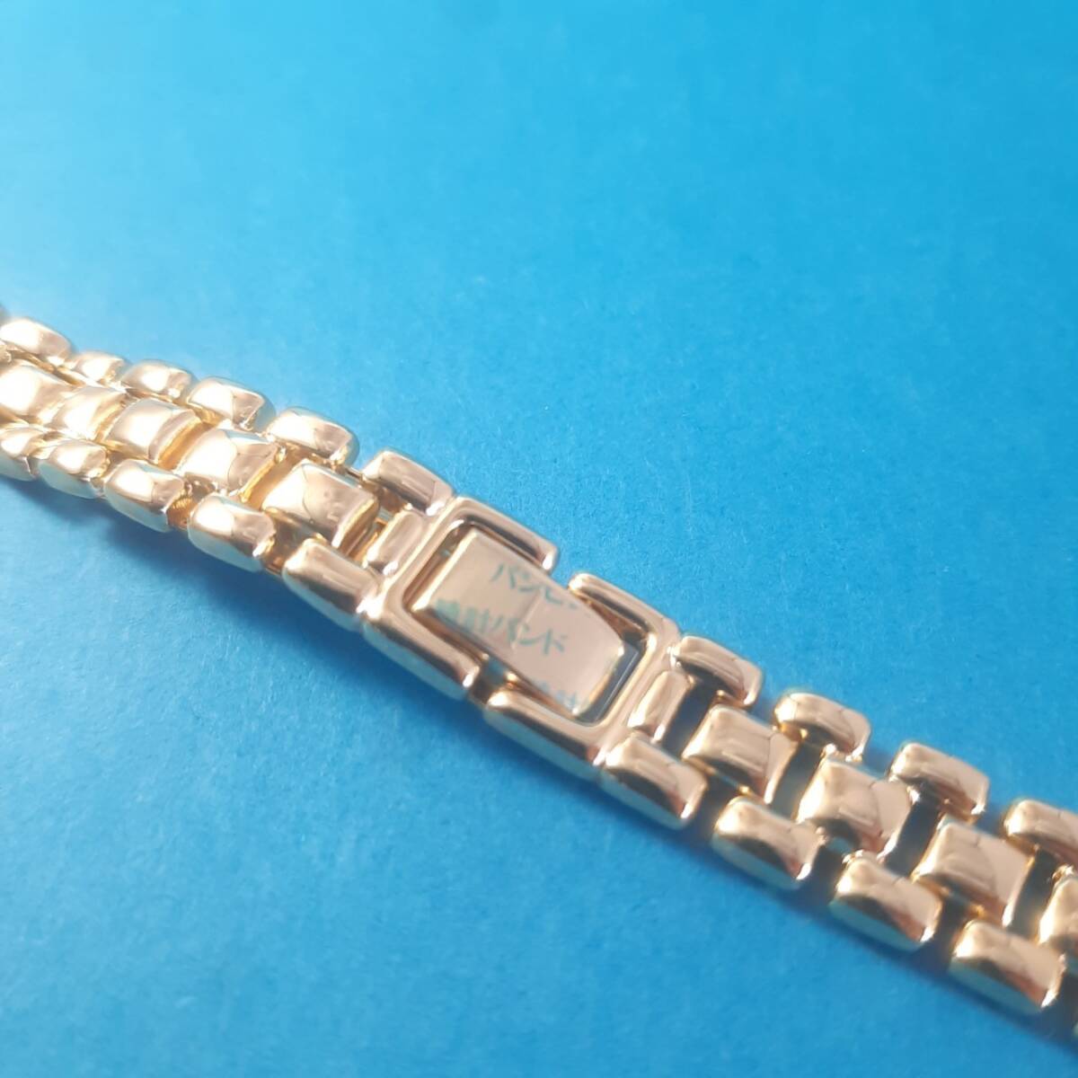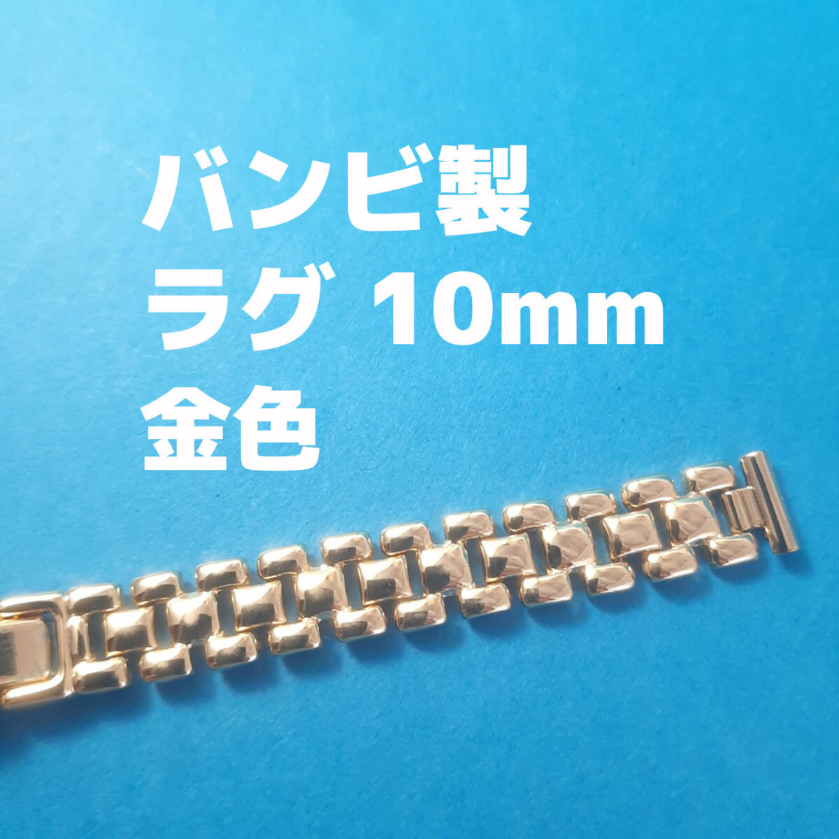 バックルの青い文字「バンビ時計バンド」は傷防止の保護シールです。
