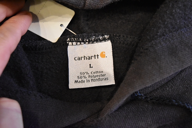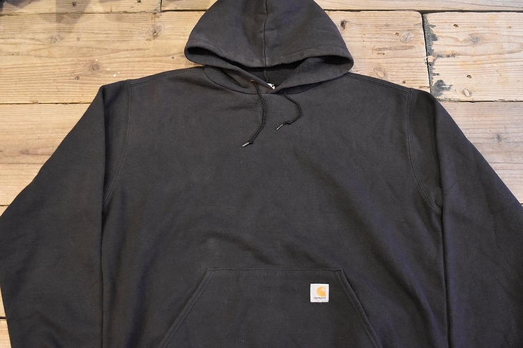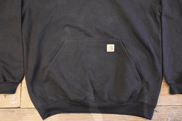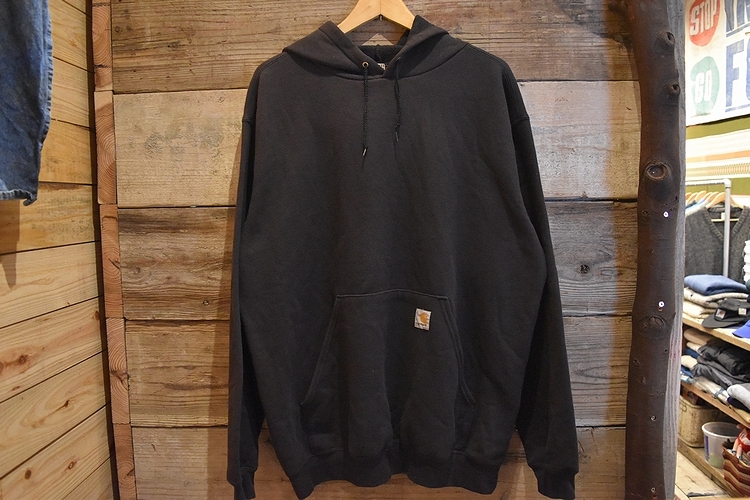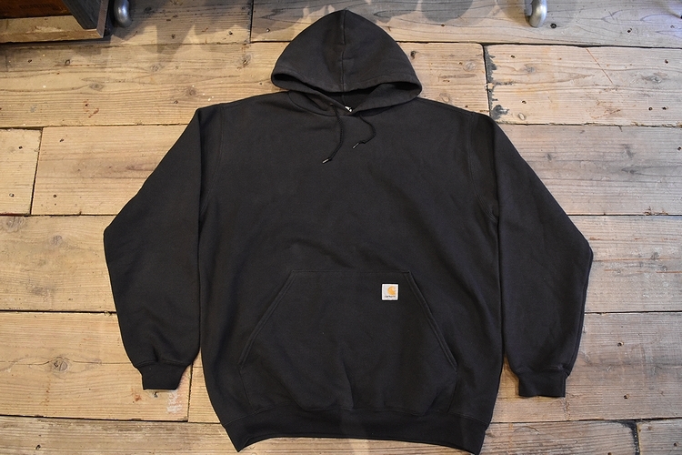 グッドスタイル◎carharttカーハートロゴプリントスウェットパーカー黒ブラックLアメカジアウトドアストリート無地ビッグサイズt196