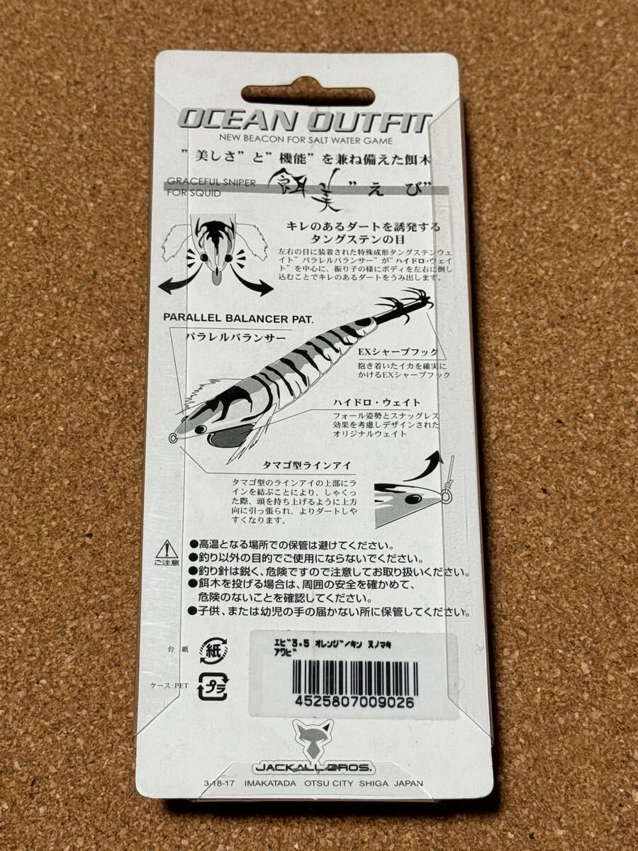 ■商品名: ■ジャッカル■オーシャン アウトフィット 餌美/3.5寸・3.5号/オレンジ/えび・エビ/アワビ貼・タングステン☆未使用☆