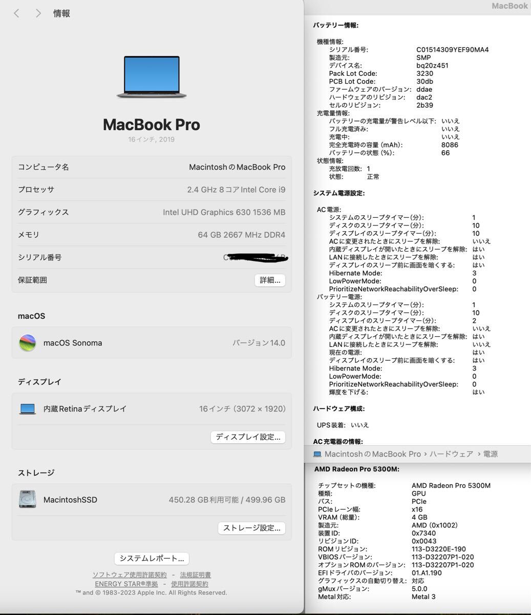 グラフィックス:AMD Radeon pro 5300M 4GB