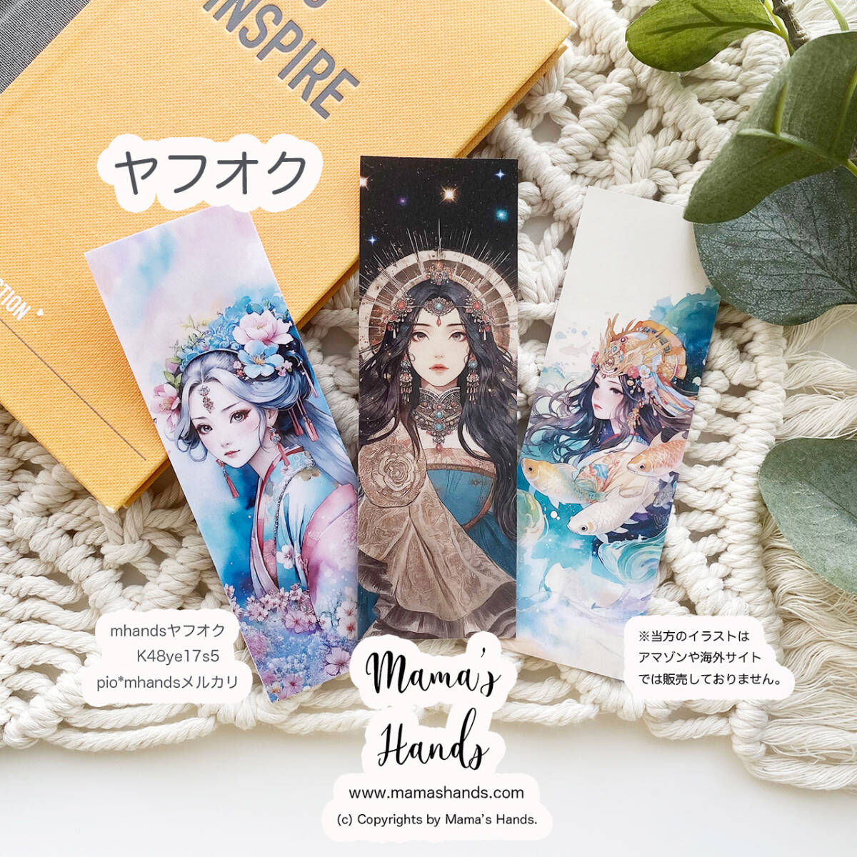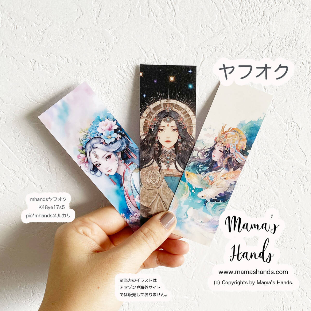★即決★ 木花咲耶姫 瀬織津姫 玉依姫 しおり 防水 硬い 長持ち 水彩画 読書 開運 イラスト アート 3枚セット