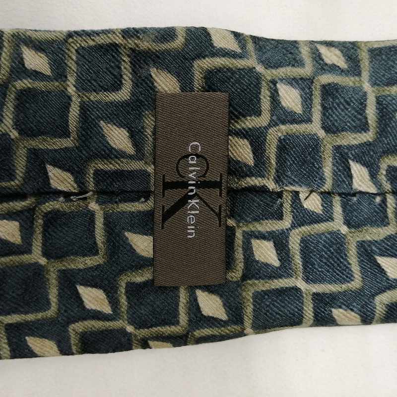 シーケーカルバンクライン ck Calvin Klein 総柄 ネクタイ 幾何学模様 レギュラータイ シルク 緑 グリーン ■GY09 メンズ