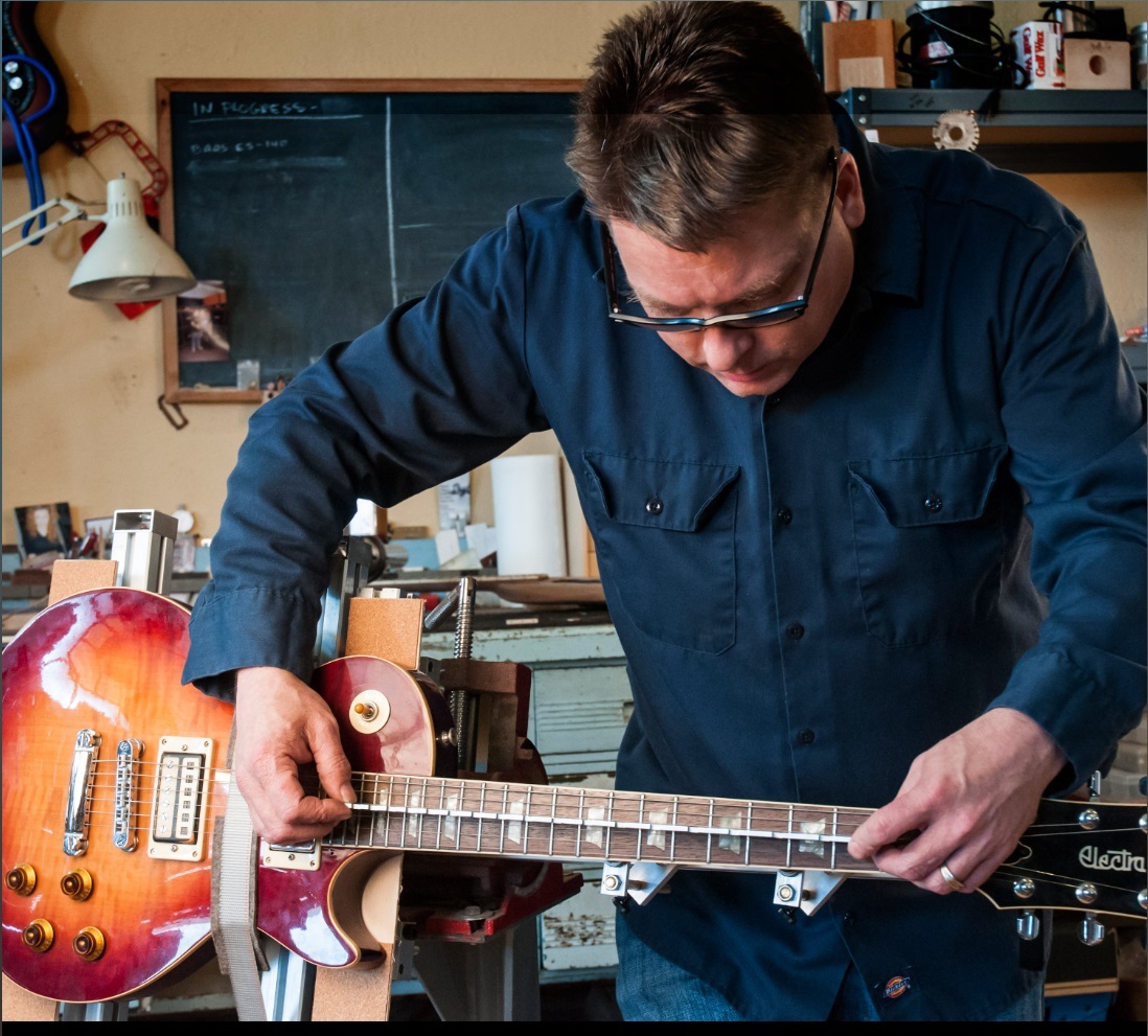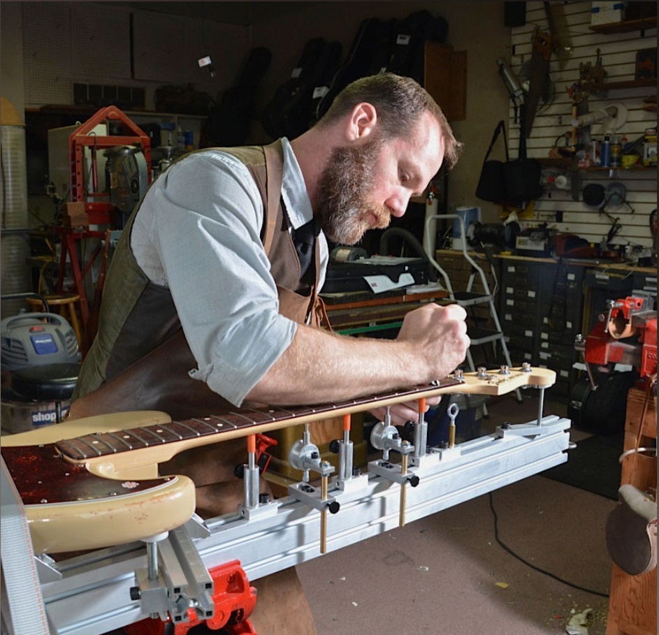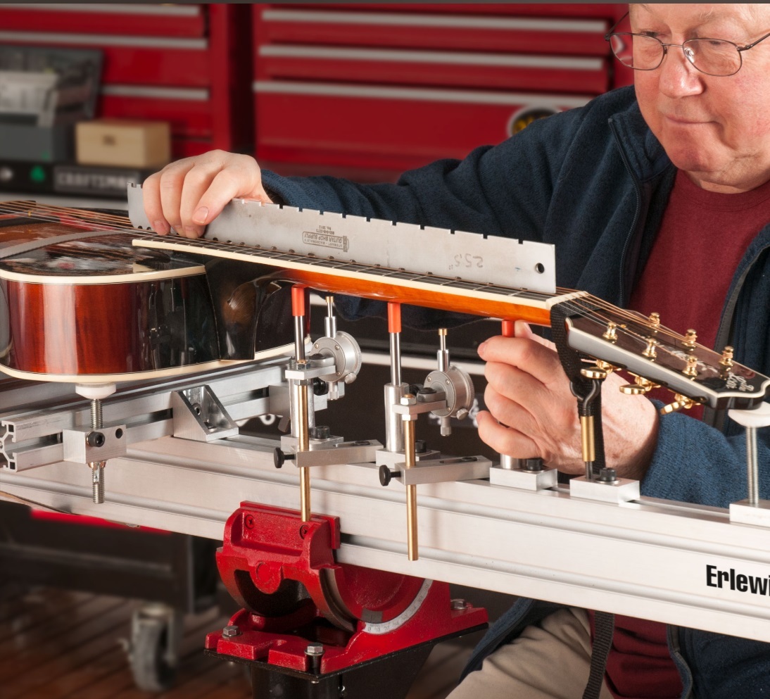 ネックに弦を張った状態のテンションを再現し、指板修正やフレット擦り合わせ等の作業が可能となる治具となっております。